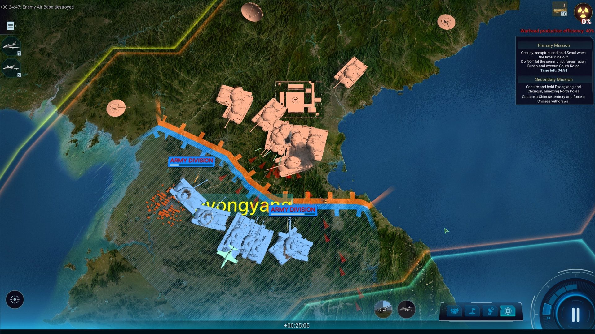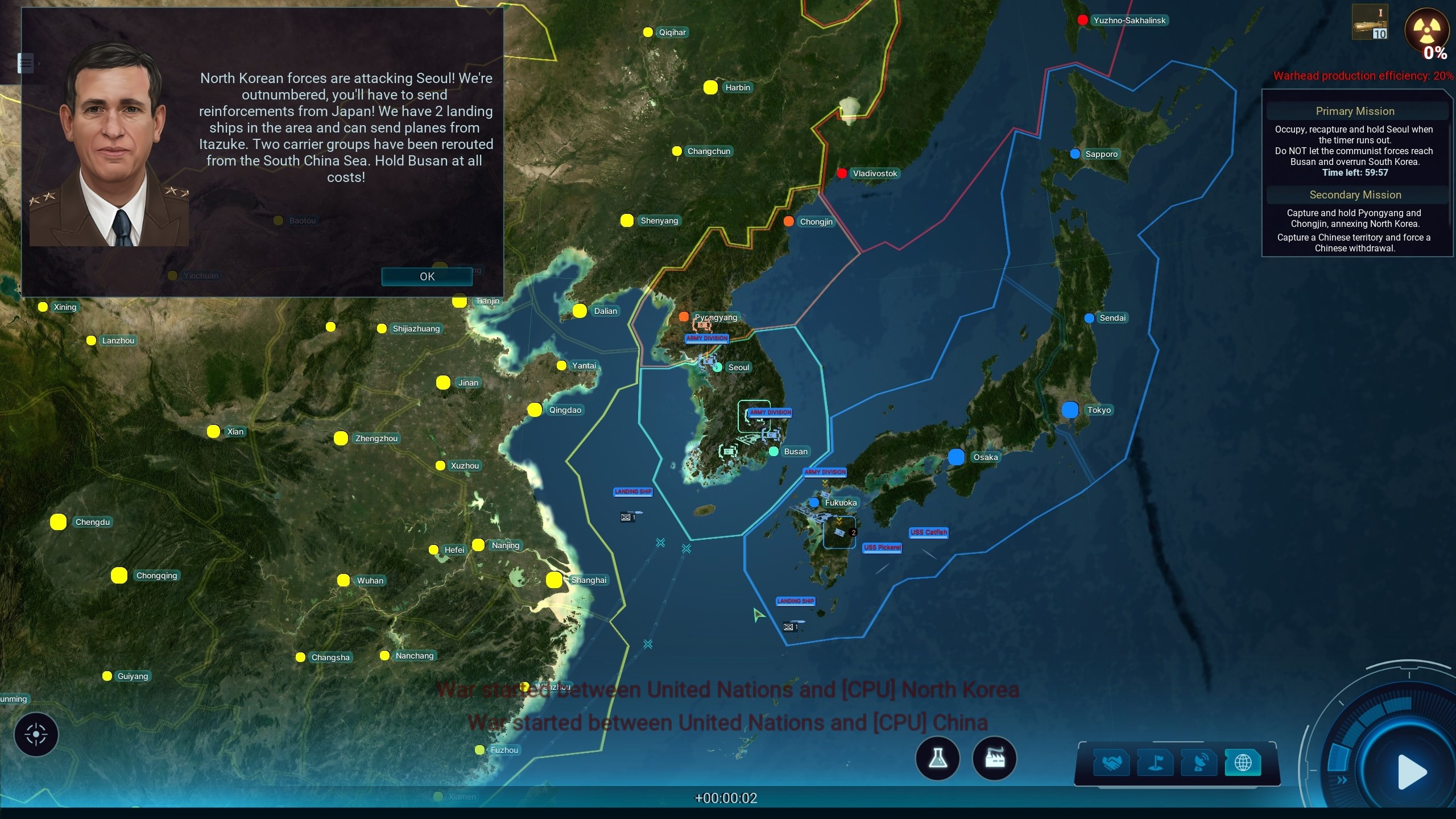 Тем не менее, отбросить натиск северокорейцев возможно даже без ядерного оружия. Основные задачи миссии требуют вернуть Сеул и удерживать его определённое время, после чего объявляется победа. Но есть также и второстепенные задания, и их выполнение представляет собой действительно интересную и трудную задачу. Игроку будет предложено занять Северную Корею, что само по себе будет нелегко, но ещё и первые успехи приведут к прямому вступлению в войну Китая. Поток китайских дивизий, угрожающий буквально смыть едва-едва закрепившиеся в Пхеньяне американские силы, поистине ужасает.