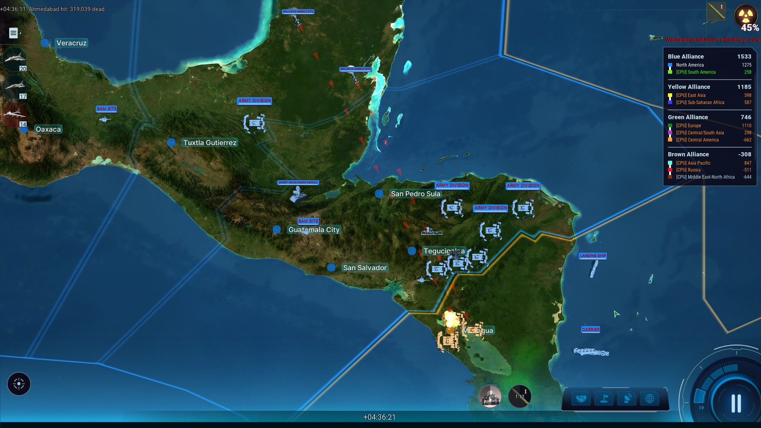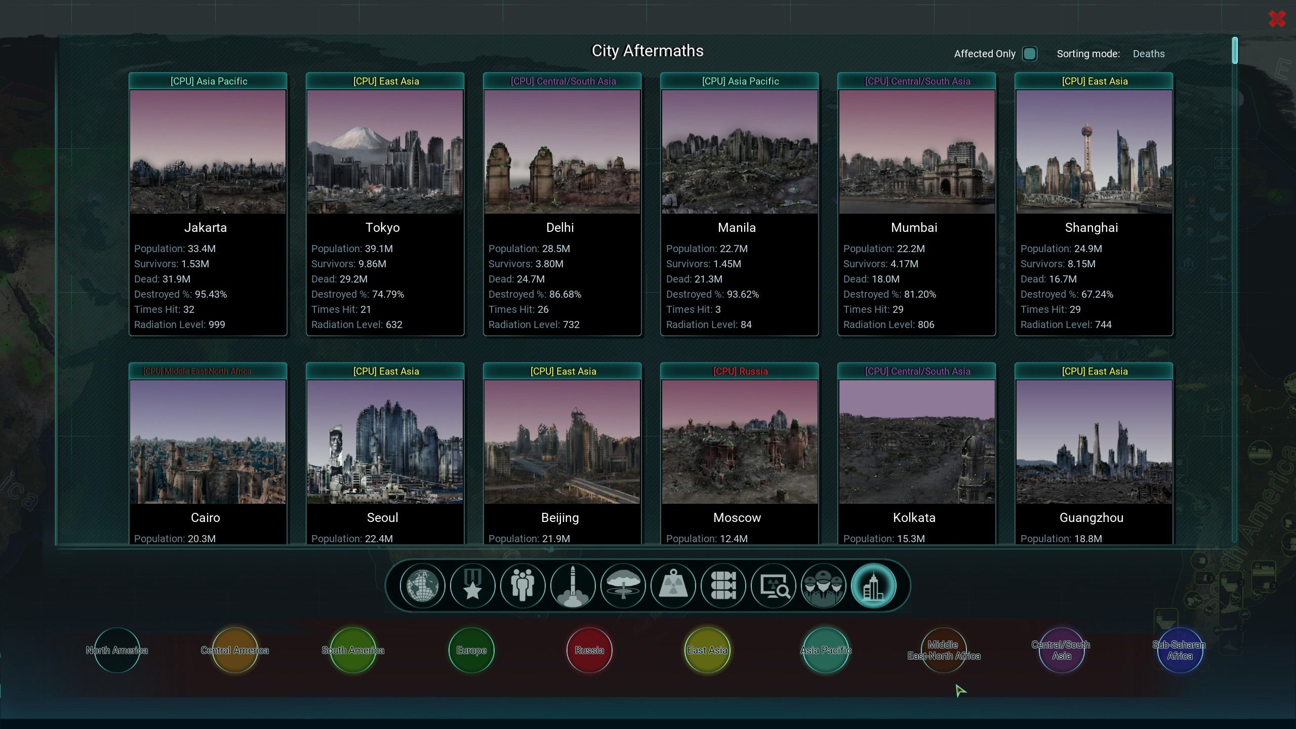 После уничтожения аэродромов, мест запуска ракет, ракетных шахт, уменьшения ущерба от ракет противника при помощи систем ПВО, вы уже приступаете к подсчёту потерь, как вдруг совершенно неожиданно со всплывшей подводной лодки вроде бы разгромленного противника запускается ещё полтора десятка ракет. Они прорывают сильно прохудившуюся ПВО, и вот на карте, где стояли крупнейшие города, вырастают ядерные грибки – и баланс потерь мгновенно выравнивается.