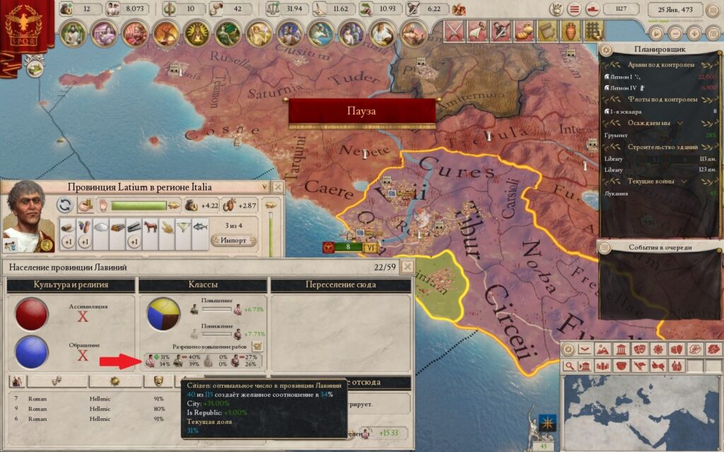 Imperator: Rome – это игра, которая получает множество обновлений, влияющий на геймплей. Поэтому в очередной версии вы сможете найти какие-то новые методы увеличения числа граждан и повышения очков исследований. Основной принцип таков: