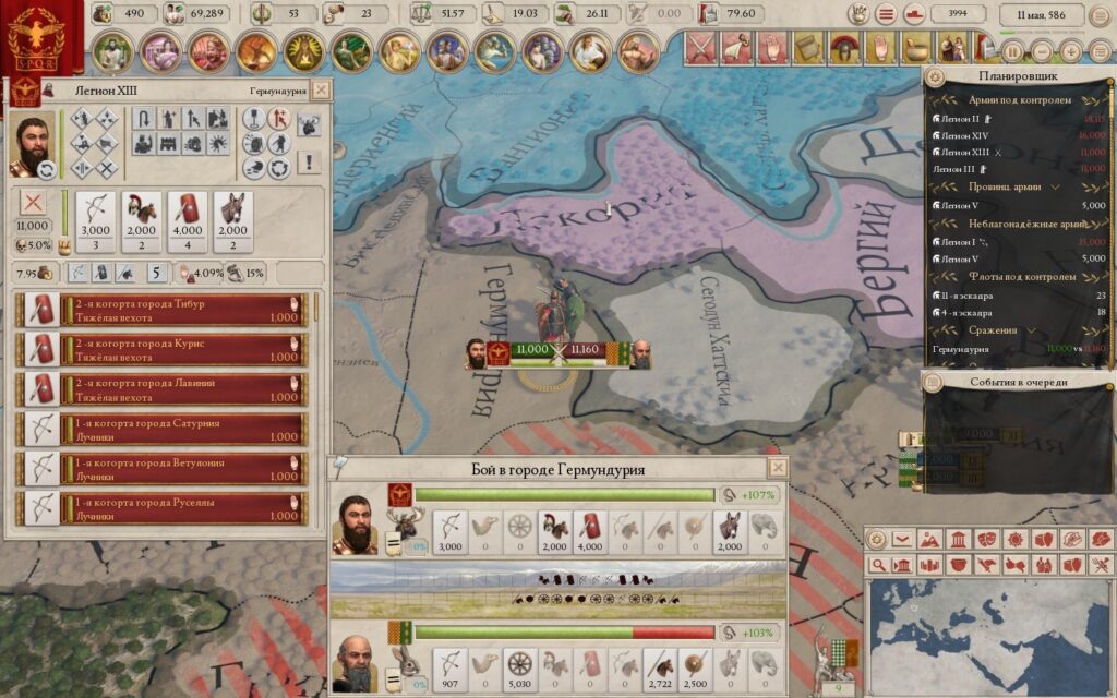 Но, не буду врать – в боёвке Imperator: Rome всё ещё присутствуют различные не совсем открытые параметры и их взаимосвязь друг с другом, и тем, кто хочет разобраться в системе полностью, придётся отправиться в интернет на поиски вики и гайдов. Но для общего понимая достаточно осознание того, какие типы войск сильнее против других.
