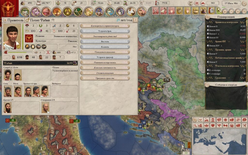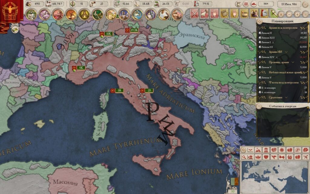 Античность в Imperator: Rome чувствуется отлично. Игра насыщена кучей разнообразных событий, которые позволяют погрузиться в те времена, и все они украшены тематическими артами. В Imperator: Rome действительно качественно поработали над сеттингом, возродив исторические государства, образ мысли, политику и философию античности. В последнее время стало модно делать различные сеттинги, просто «натянув новые скины» на готовую игру, но Imperator: Rome – не этот случай.