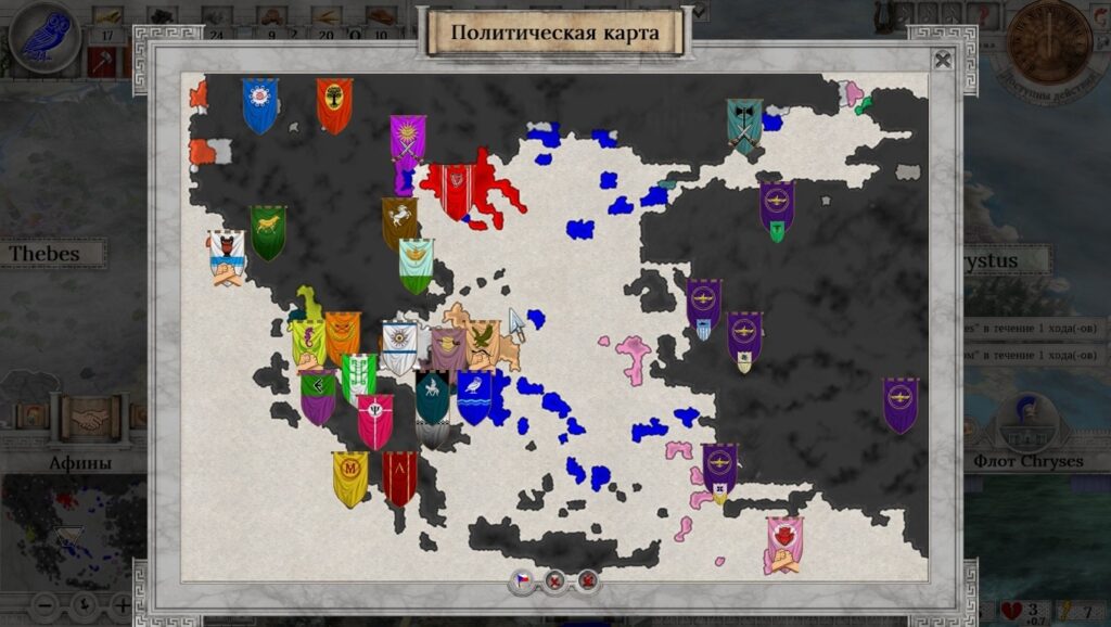 Все основные игроки при этом доступны для выбора. Нравится восточная деспотия? Их есть у нас. Персидские сатрапии и зависимые от персов государства к услугам игрока. Нравятся суровые боевые ребята с рельефными торсами? Спарта на карте присутствует. Демократия и власть над морями? Афины здесь. Есть желание поиграть за молодых и дерзких? Македония ждёт своего часа.