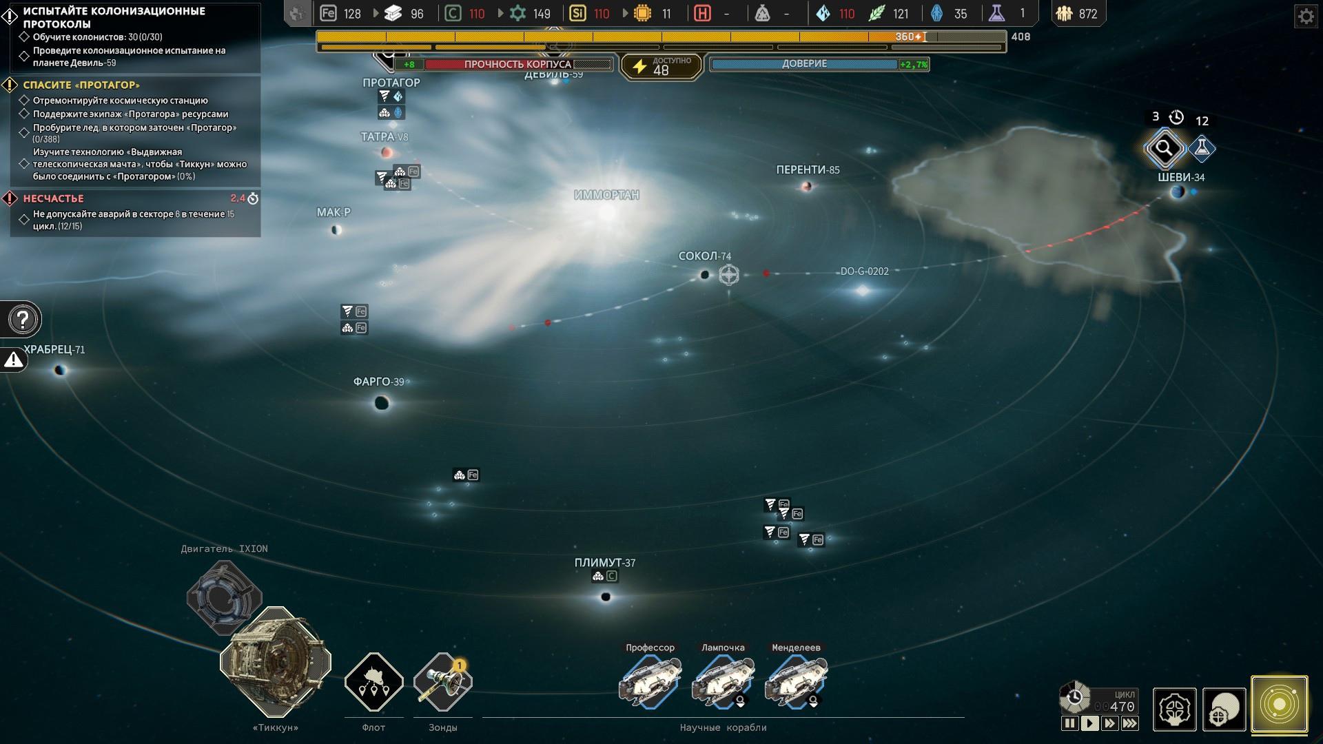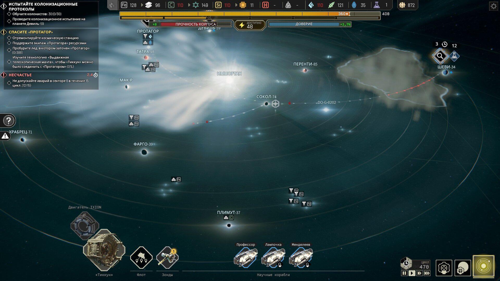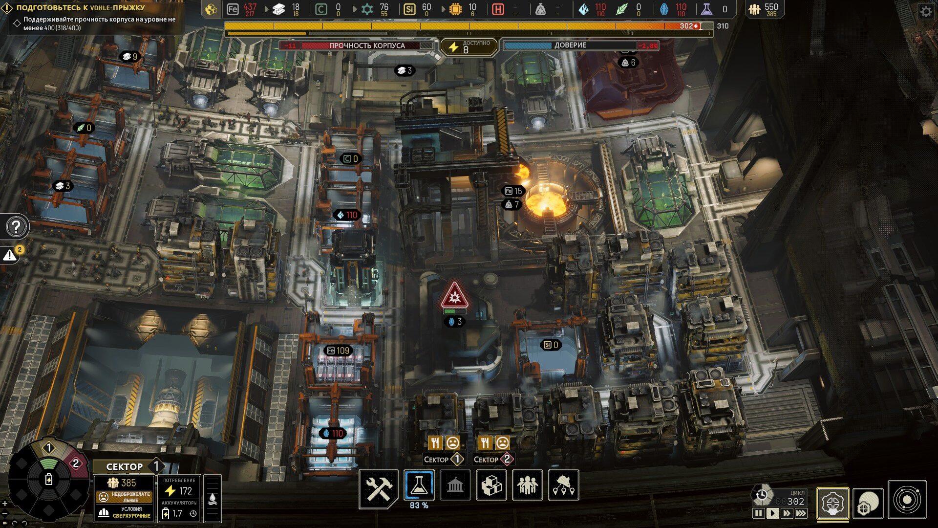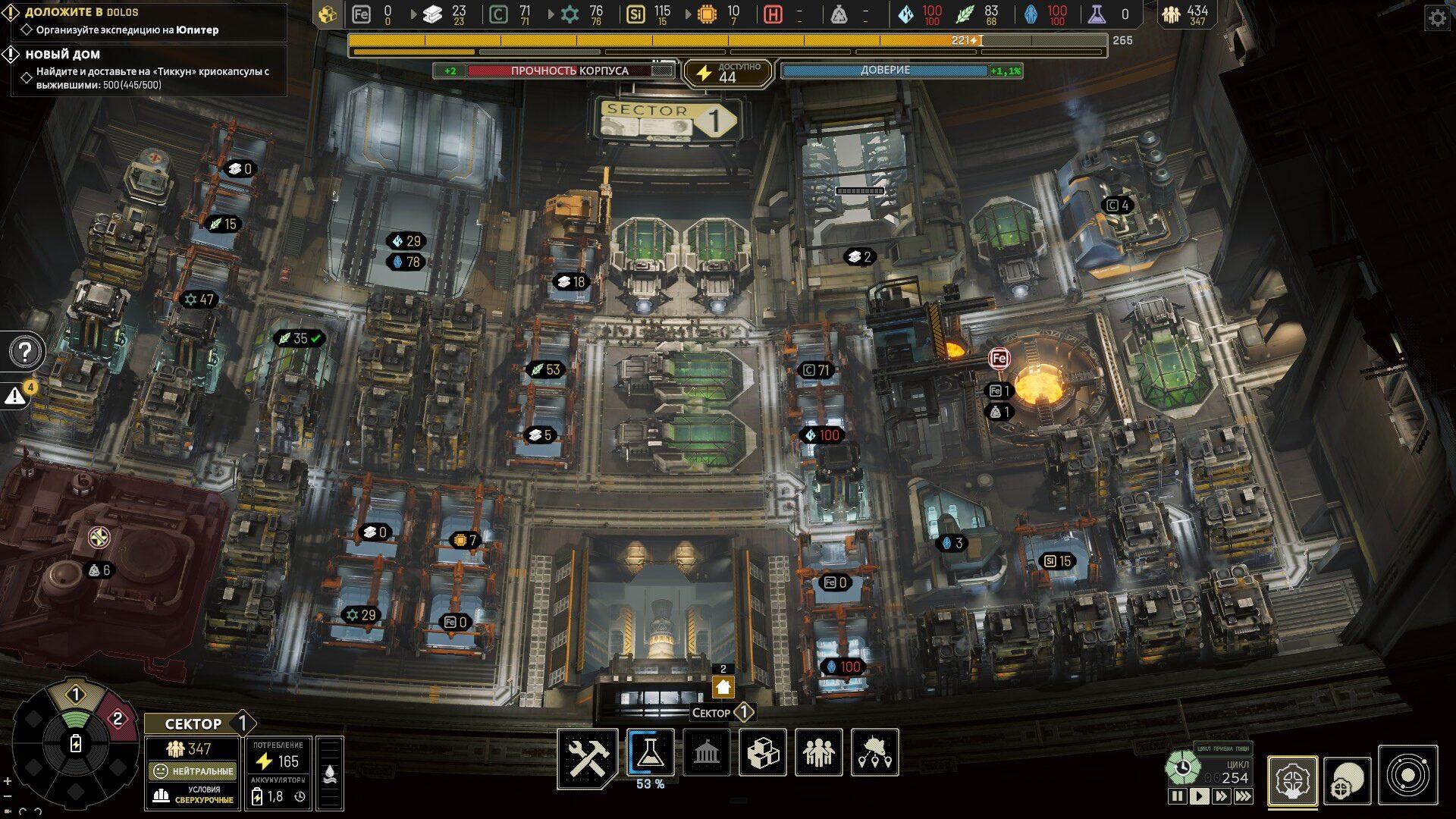 Разумеется, стратегия, посвящённая выживанию на маленьком стальном корыте в океане безразличного космоса и не должна быть простой, однако проблема IXION не в сложности самой по себе, не в требовании к игроку принятия быстрых и эффективных решений, а в обилии ситуаций, оказавшись в которых, сделать что-либо уже невозможно. Да, можно в бессилии продолжать смотреть на то, как станция цикл за циклом медленно умирает, однако большинство игроков в ярости и/или отчаянии потянутся к кнопке загрузки предыдущего автосохранения.