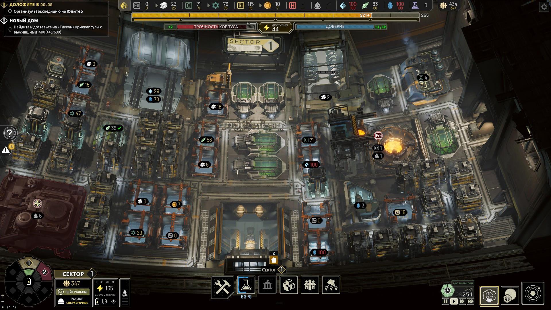 Тем не менее, никакая техника не может функционировать автономно – администратору потребуются квалифицированные рабочие. Человеческому населению, в свою очередь, потребуется еда, жильё и попросту забота, поддержание их настроя перед лицом безжалостного холодного космоса.
