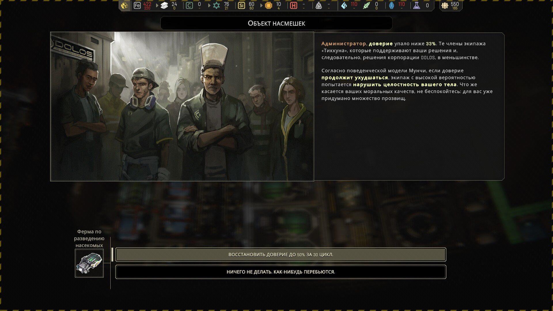 Также в игре присутствует несложная система социальной политики, не претендующая на глубину того, что было в том же Frostpunk, но нарративно обусловленная и позволяющая администратору более эффективно управлять своими подопечными.