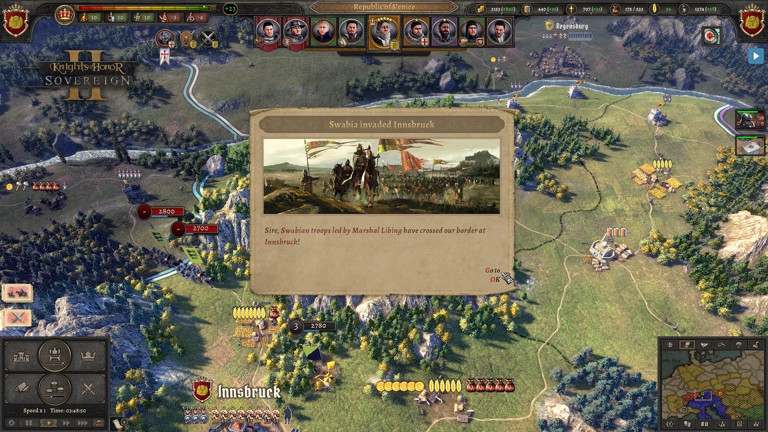 Приветствую, друзья, и добро пожаловать в 30-ый дневник разработчиков Knights of Honor II: Sovereign. На этот раз мы решили поглубже покопаться в мире ИИ и сложности игры, объяснив процесс нашего мышления по поводу балансировки темпа игры, по поводу того, чтобы игроки были увлечены всеми стадиями игры, и какие препятствия мы встретили на этом пути. Нужно сказать, что большинство отзывов, которые мы услышали на закрытой бете, были незаменимы в этом плане, и мы благодарим вас всех!