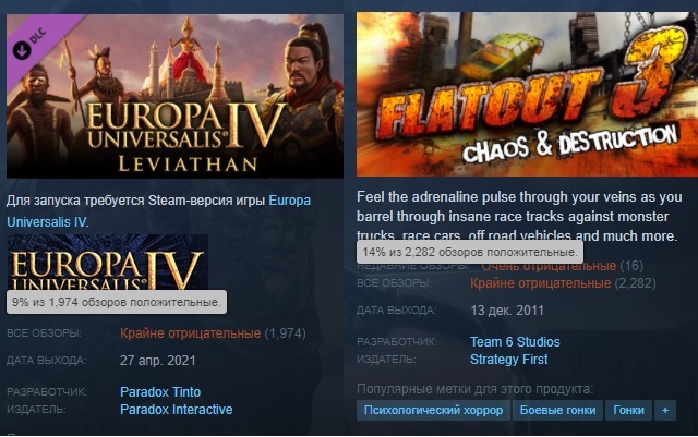 Всё это вызвало справедливый гнев фанатов, которым удалось опустить отзывы о дополнении в Steam на рекордную для платформы отметку в размере всего 9% положительных отзывов на момент написания этой статьи. Для сравнения, предыдущий рекордсмен Flatout 3 имеет 14% положительных отзывов.