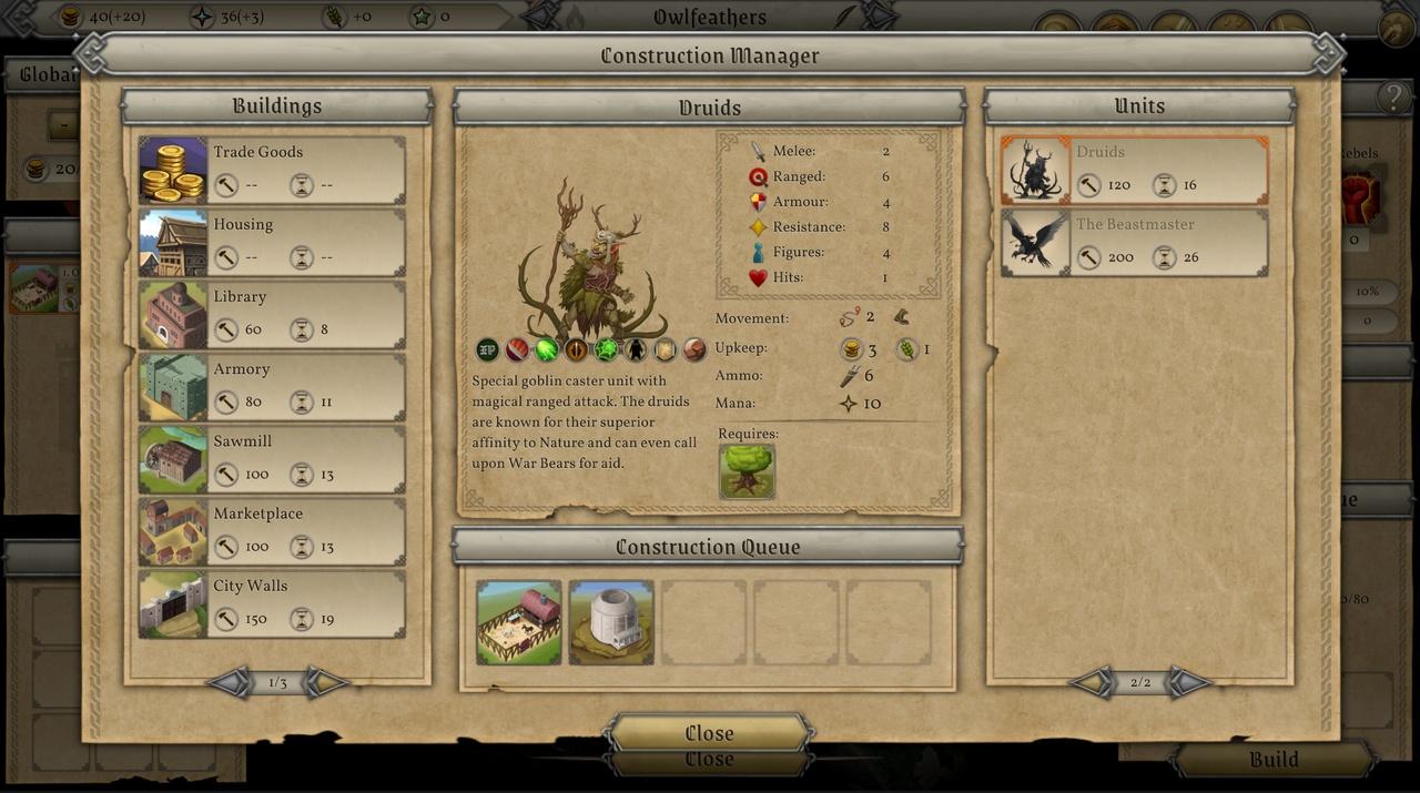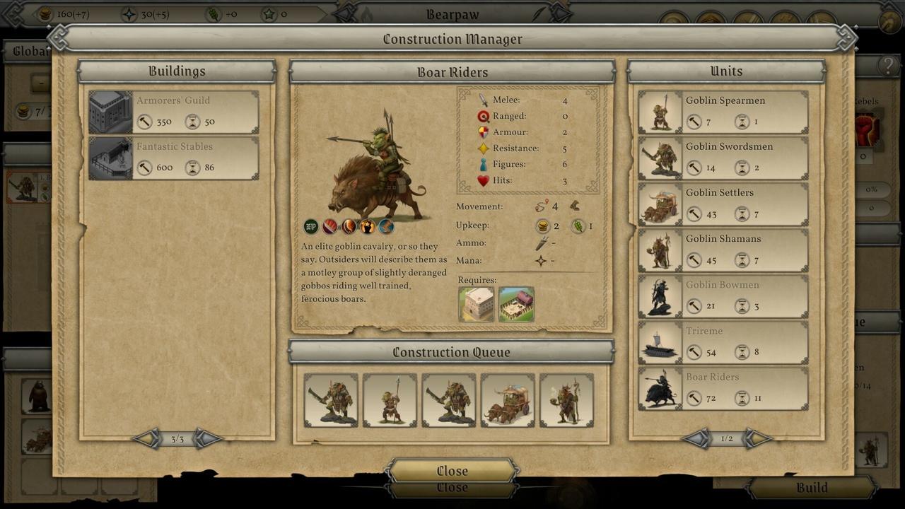 Гоблины будут представлены небольшими зелёными существами, специализирующимися на приручении животных и магии друидов. Они смогут выставить на поле боя такие юниты, как гоблин-лучник, наездник на кабане, друид и повелитель зверей, который поможет в командовании особой толстой крысой.