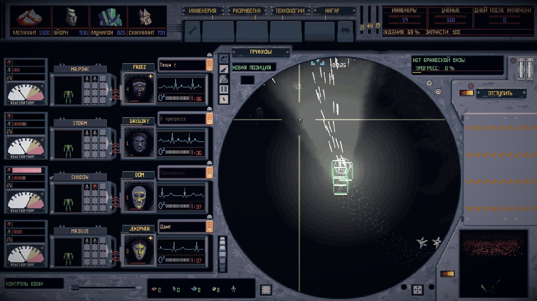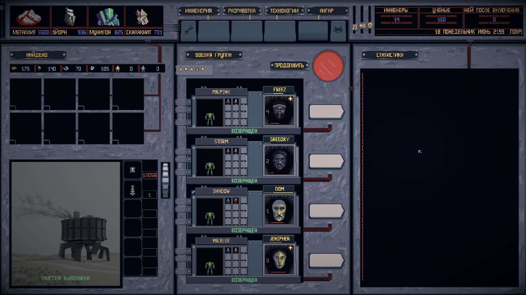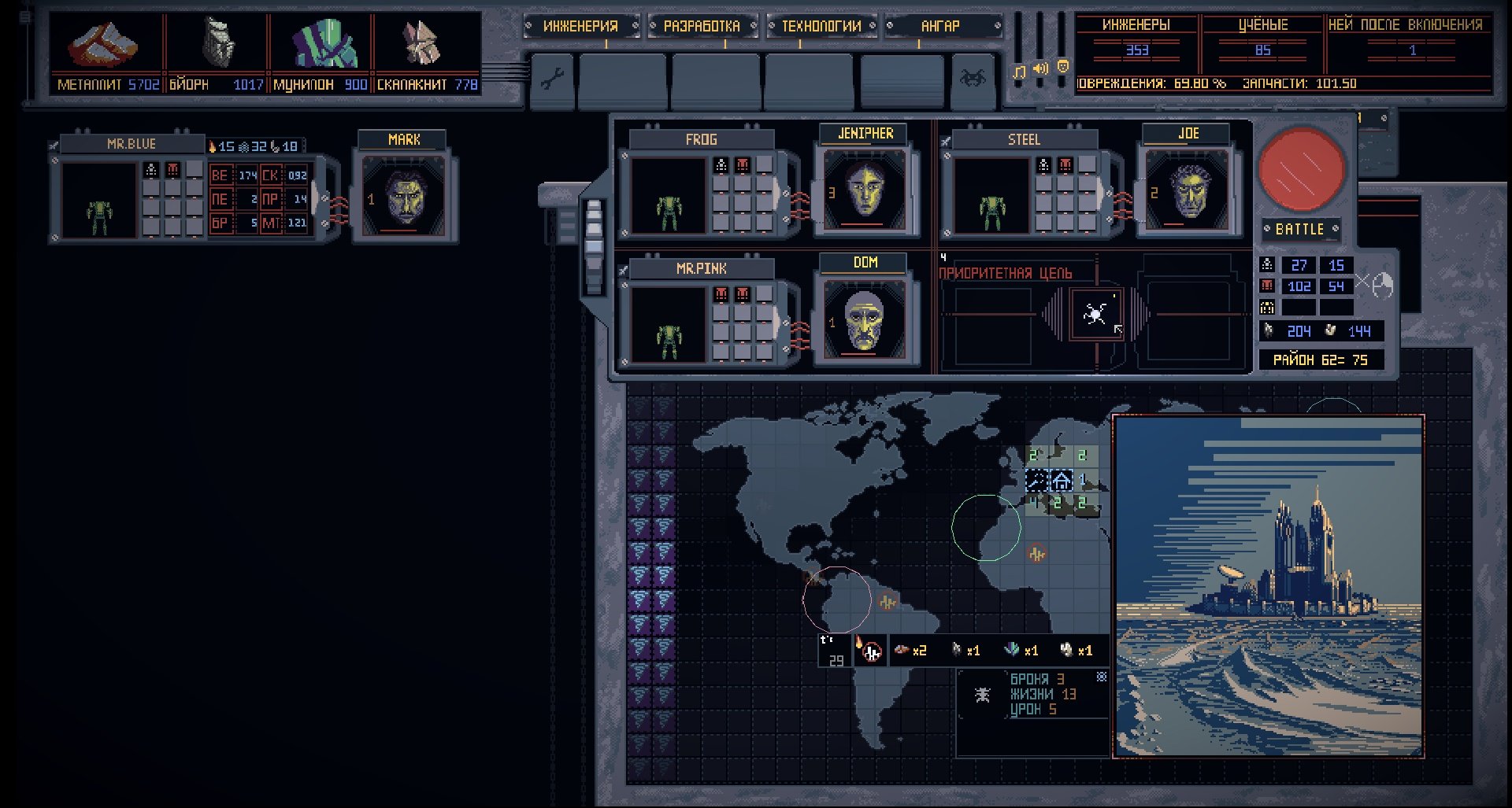 Сразу после окончания защиты города будут получены все собранные за миссию ресурсы и приобретённый пилотами опыт. На этом инструкции закончатся. Само прохождение миссии тоже выглядит немного непривычно. Игрок как будто оператор – наблюдает за происходящим и видит все возможные характеристики и состояния своих подчинённых.