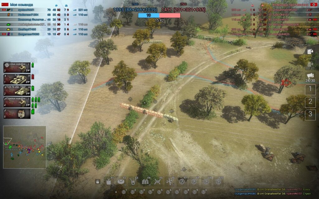 Сохранена возможность прямого управления (это когда вы можете взять под управление, например, танк, и ездить на нём от третьего лица). По моим ощущениям, пока что прямое управление не так серьёзно влияет на исход боя из-за общей сумасшедшей динамики сражений «куча на кучу», однако выцеливание слабых точек брони по-прежнему актуально, и артиллерия стреляет гораздо точнее, если вы прицеливаетесь лично. Возможно, прямое управление приобретёт ещё большую актуальность для любителей покатать танки высокого уровня, но стоит помнить, что баланс ещё кучу раз поменяется (это же ЗБТ) и в будущем значимость прямого управления может измениться в ту или иную сторону.