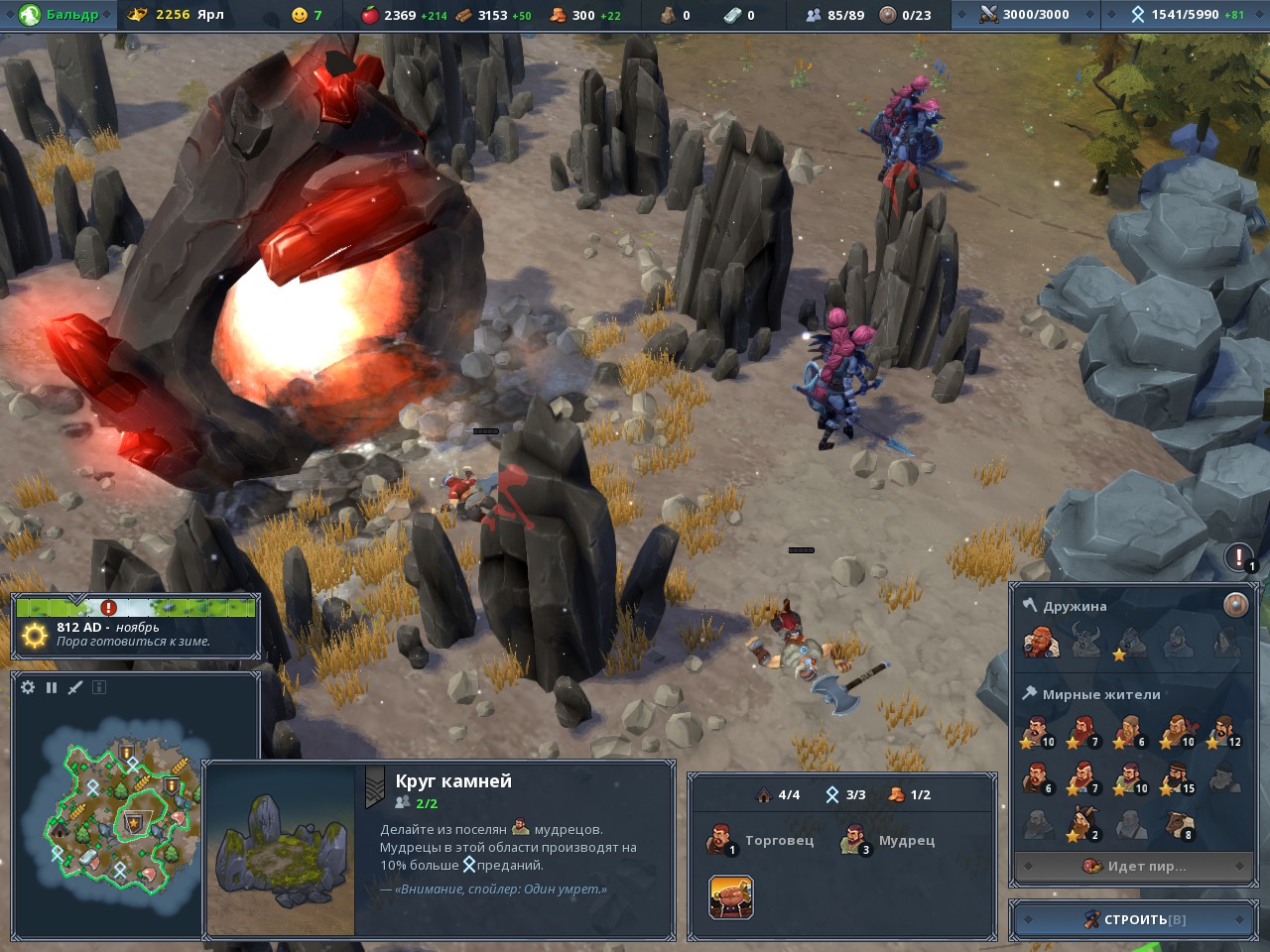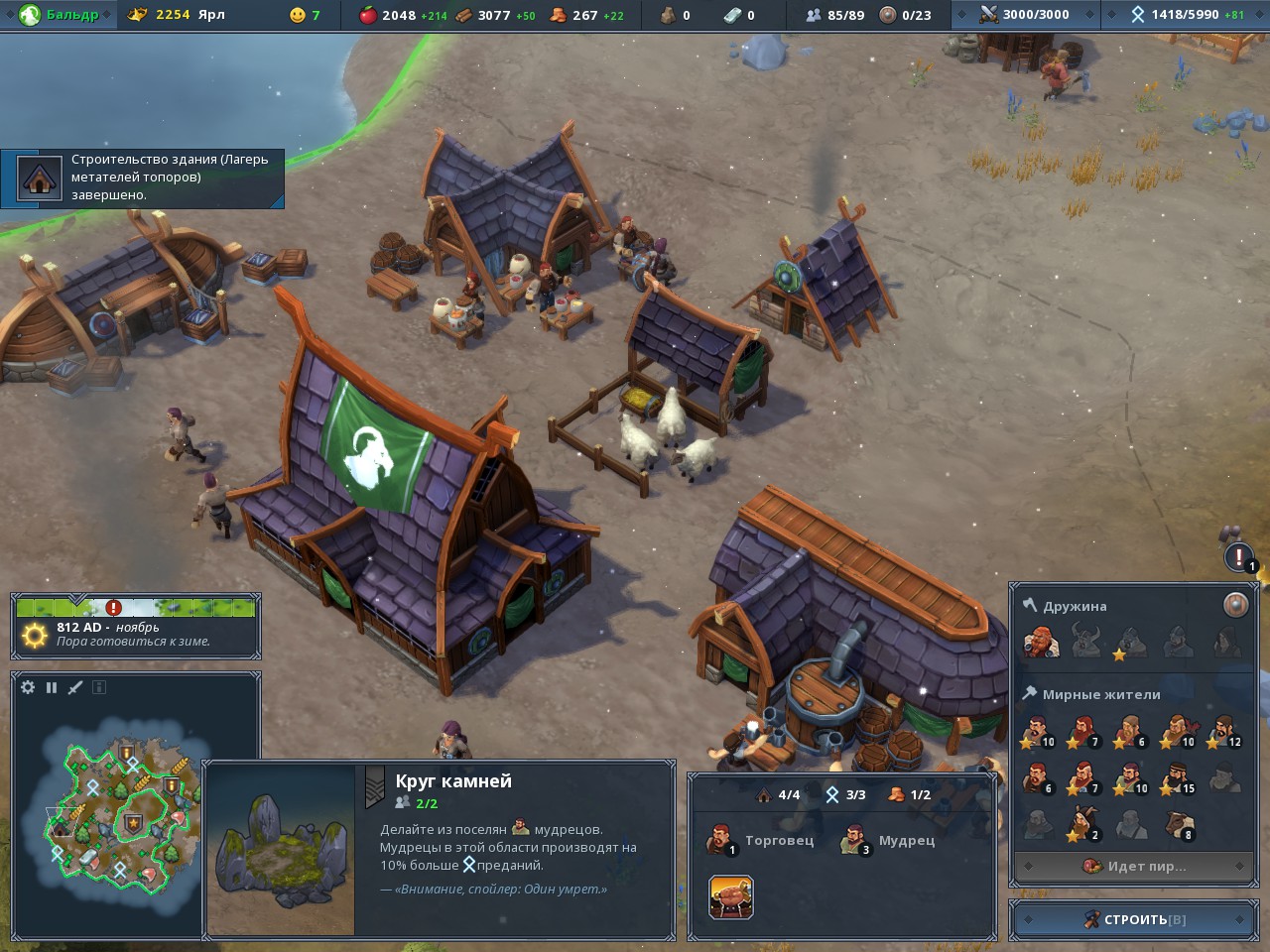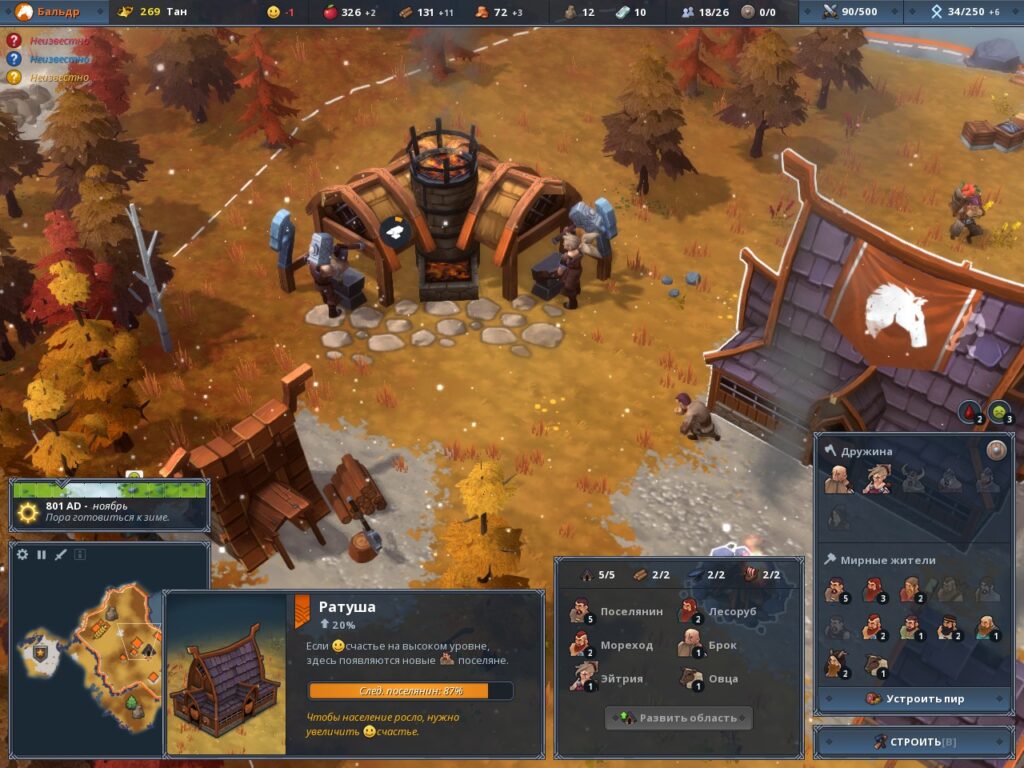 Сам геймплей весьма динамичен. Уникальность экономики и распределения людей заставляет вас развиваться: искать новые земли, разумно тратить отведённые слоты зданий и людей, чтобы всего в вашем клане было в достатке – как еды, дерева и золота, так и славы, мудрости и счастья.