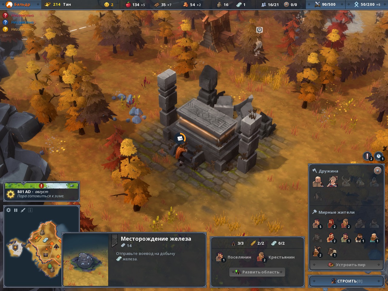Northgard заставляет постоянно искать новые решения проблем, а также способы развития клана, ведь на каждом новом кусочке территории можно строить ограниченное количество зданий. Ещё на этой территории могут быть особые ресурсы вроде рыбы, оленей, зерновых полей и камня. Это существенно поможет вашему клану пережить зиму и окрепнуть, поскольку благодаря добыче этих ресурсов показатели сбора зимой не будут падать слишком быстро.