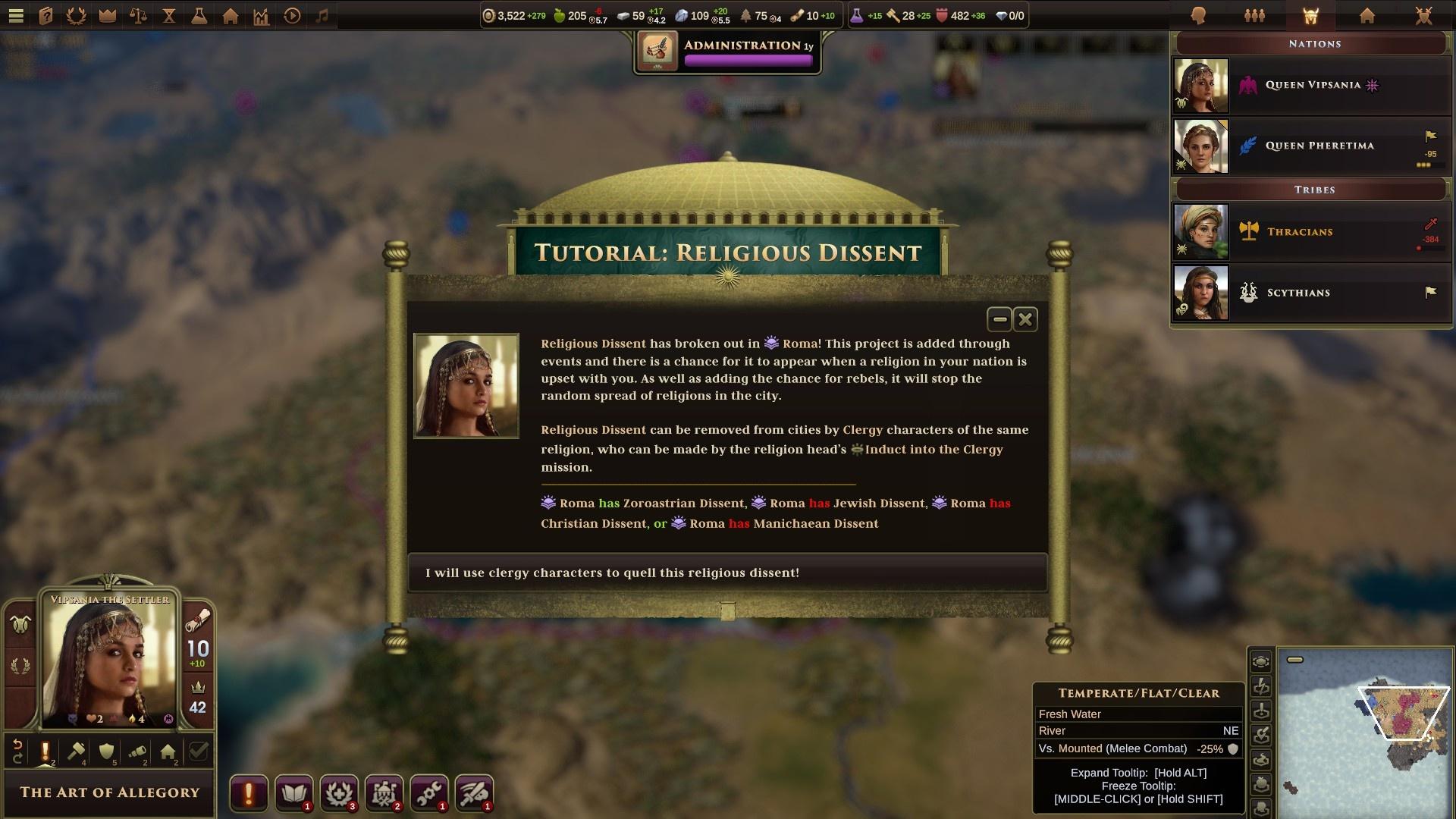 По сути, клерики теперь стали чем-то вроде олигархических семей. Со своими лидерами, служащими и хотелками. Если они довольны, то выпадают события с различными плюшками. Города этих религий получают неплохие модификаторы. Если же нет… То можно и помереть от покушения, а недовольные верующие будут регулярно предлагать вам подставить вторую щеку. Не могу сказать, что это как-то сильно меняет баланс, но юниты теперь приходится держать и в тылу. Ведь если у вас 5 религий в городе… То кто-то из них обязательно будет притесняем.