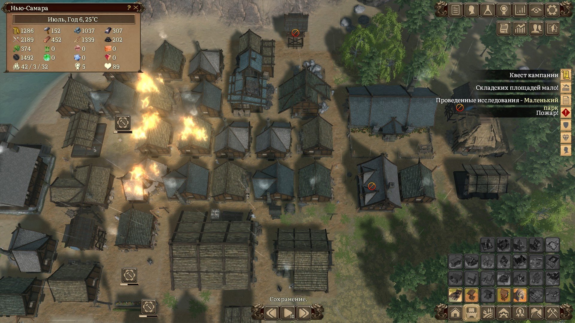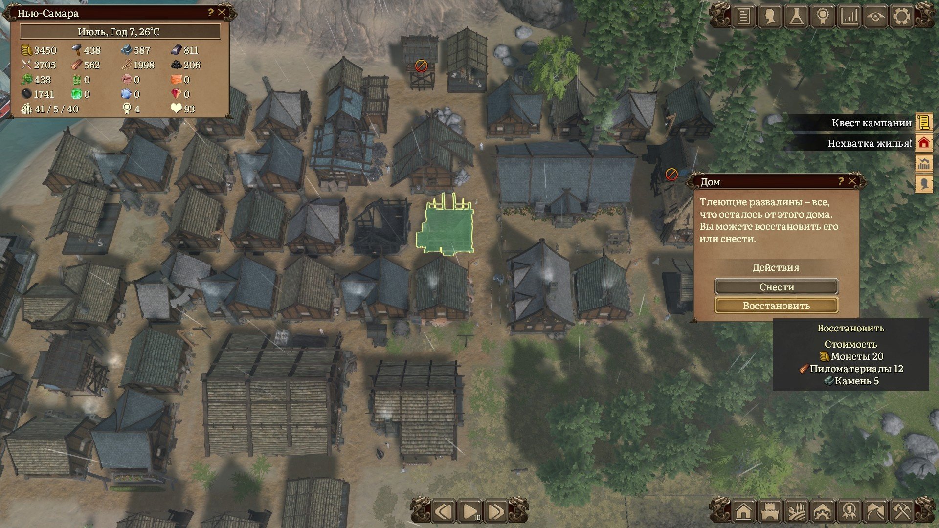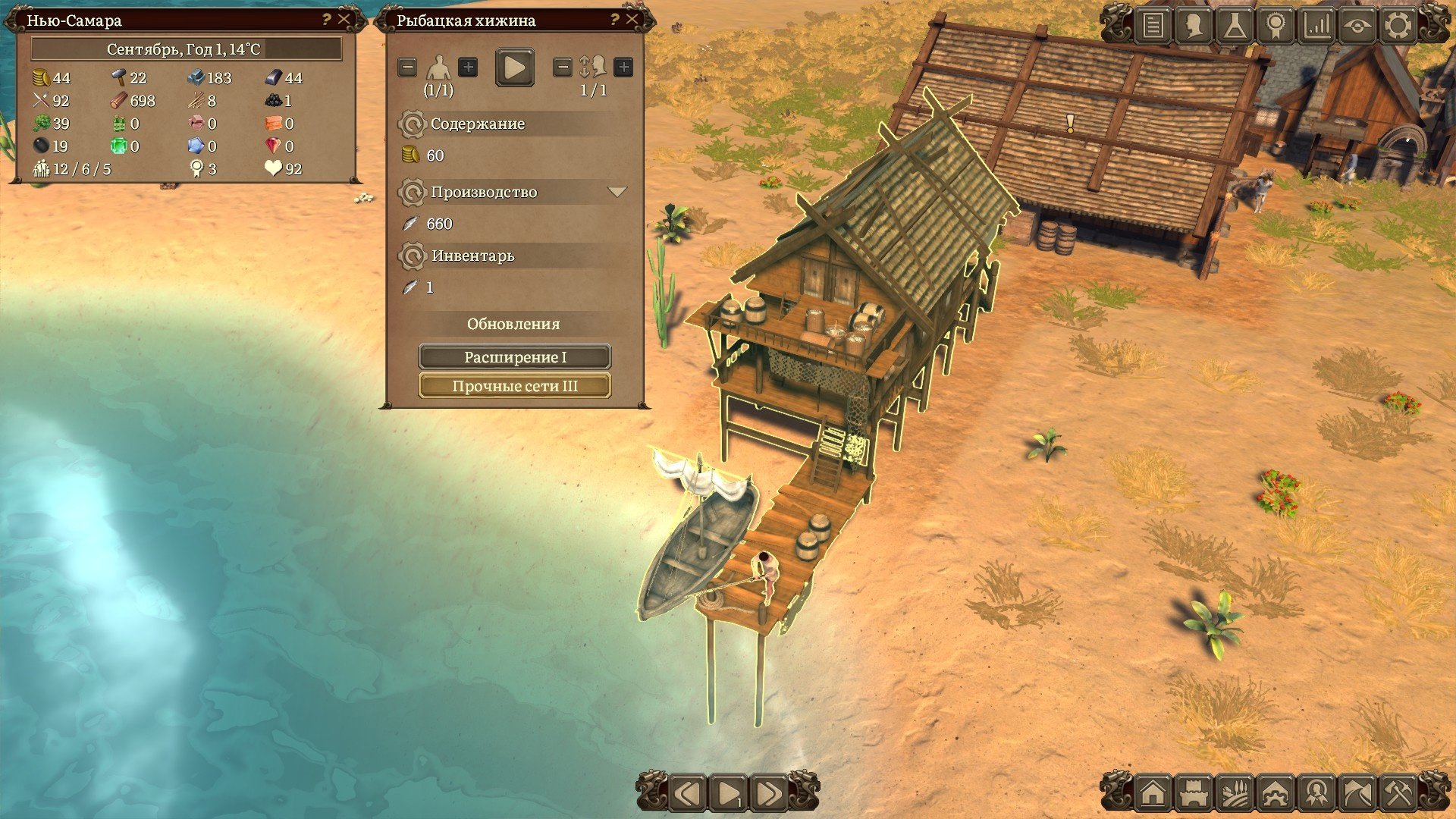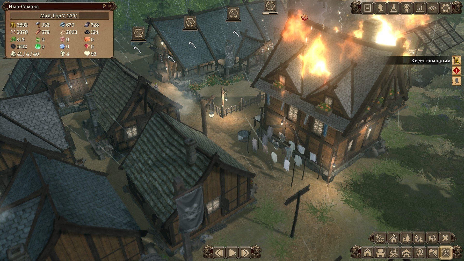 Распределение граждан на работы можно осуществлять вручную, а можно делать это в автоматическом режиме поставив соответствующую галочку. Эта механика почти до самого окончания кампании будет подкидывать вам задачки. Работ много, особенно если развивать деревеньку быстрыми темпами, а рабочих рук мало. Приходиться балансировать и перекидывать рабочих с разных задач, при этом всё-таки поддерживая минимальный уровень работяг на всех построенных производствах. А новых трудяг можно получить либо с помощью миграции, либо ваши поселенцы образуют семьи, заведут детей, те вымахают в подростков и только потом во взрослых, налогооблагаемых женщин и мужей. Это достаточно долго и придётся проявить терпение.