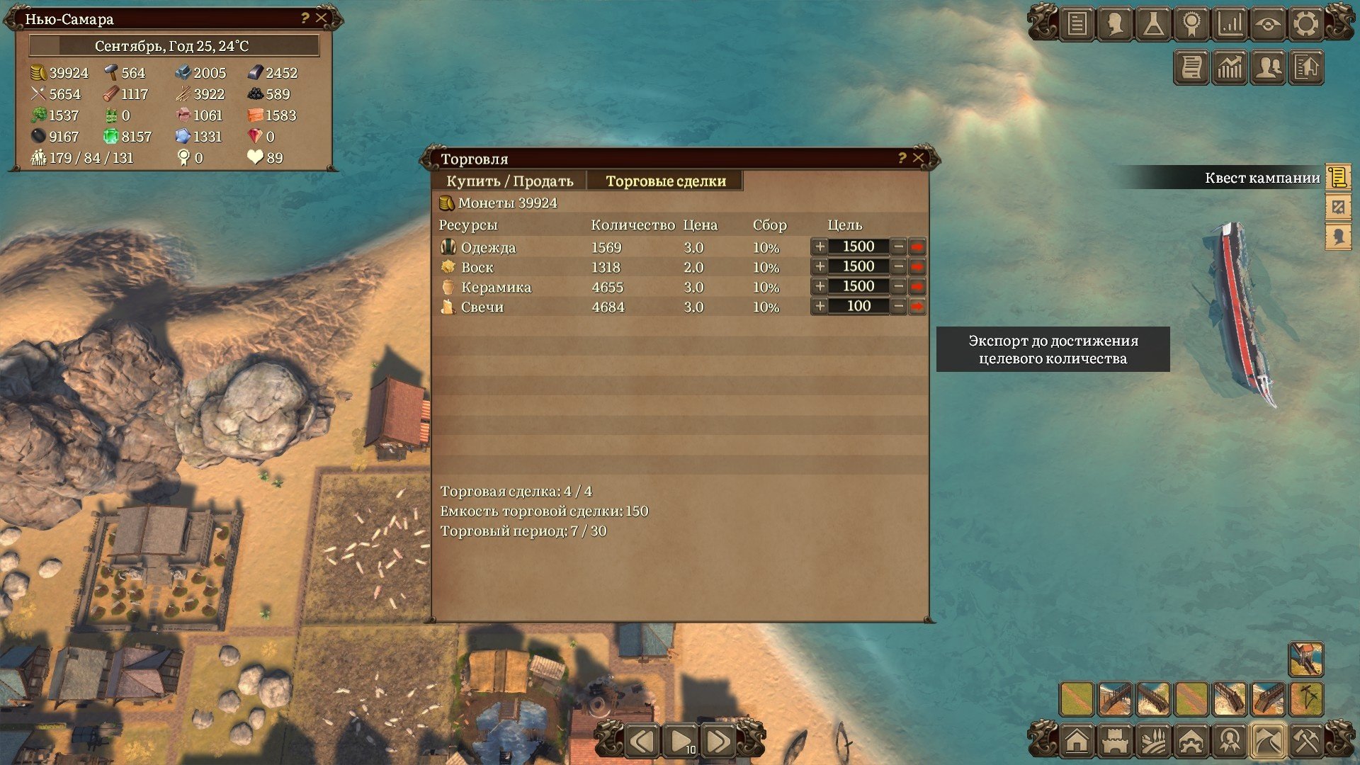 Одна из лучших идей, это добавить максимально понятную и удобную систему торговли. Во-первых вы можете в ручном режиме купить/продать необходимые товары выбрав количество соответствующее максимальному объёму судна.