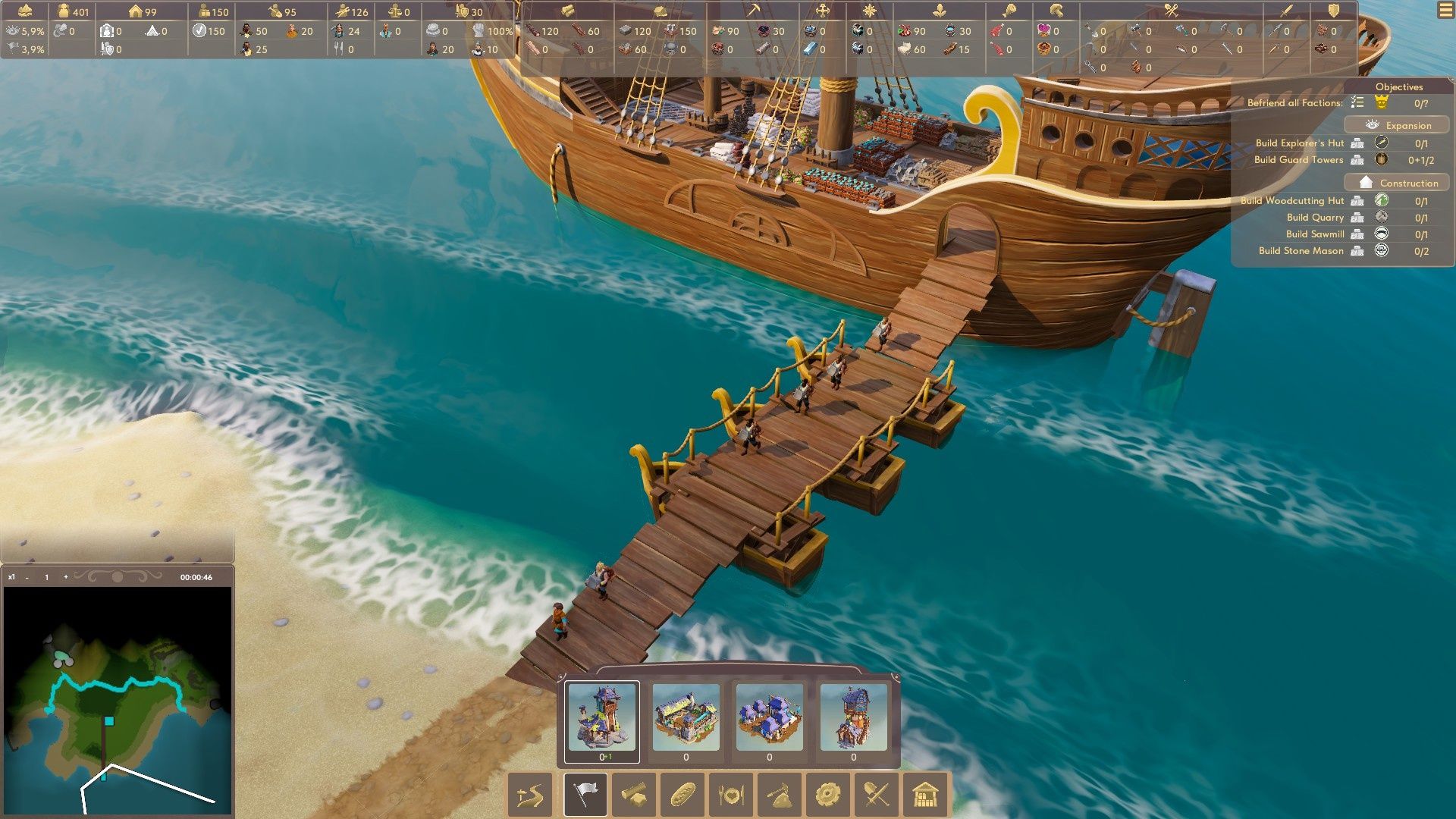 Когда вы накопили фонд для бесперебойного строительства, можно задуматься и о добыче всего остального. Залежи меди, железа, угля и серебра разбросаны по острову и по мере их открытия разведчиками, можно создавать товары высокого передела.