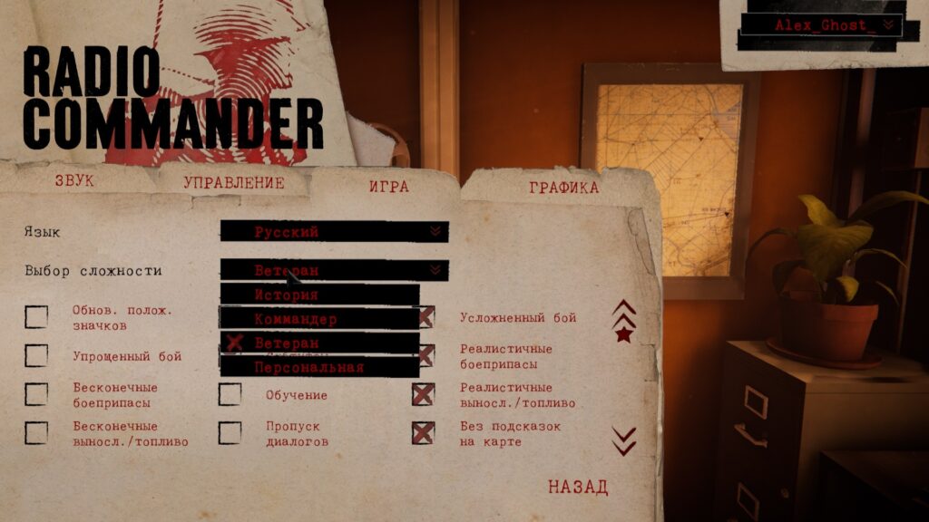 Вы больше предпочитаете коротать за каждым уровнем несколько часов, или насладиться сюжетом и атмосферой без трудностей? Radio Commander вариативен: если три уровня сложности не подошли, то настройте всё для себя индивидуально; отображение, патроны, подсказки, 3D, сложность и реалистичность боя и далее по списку.