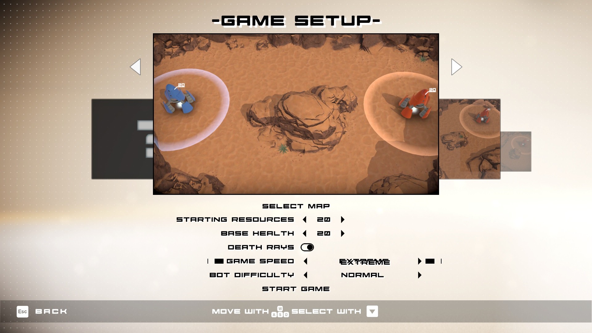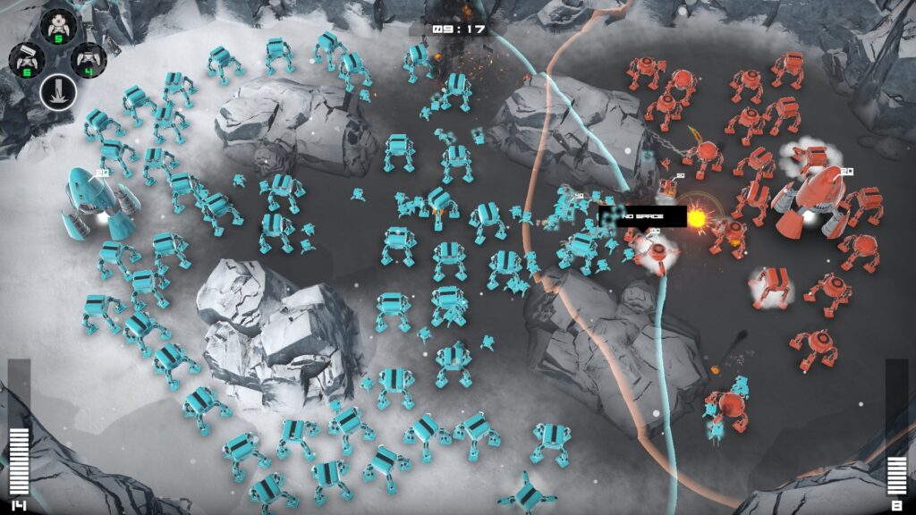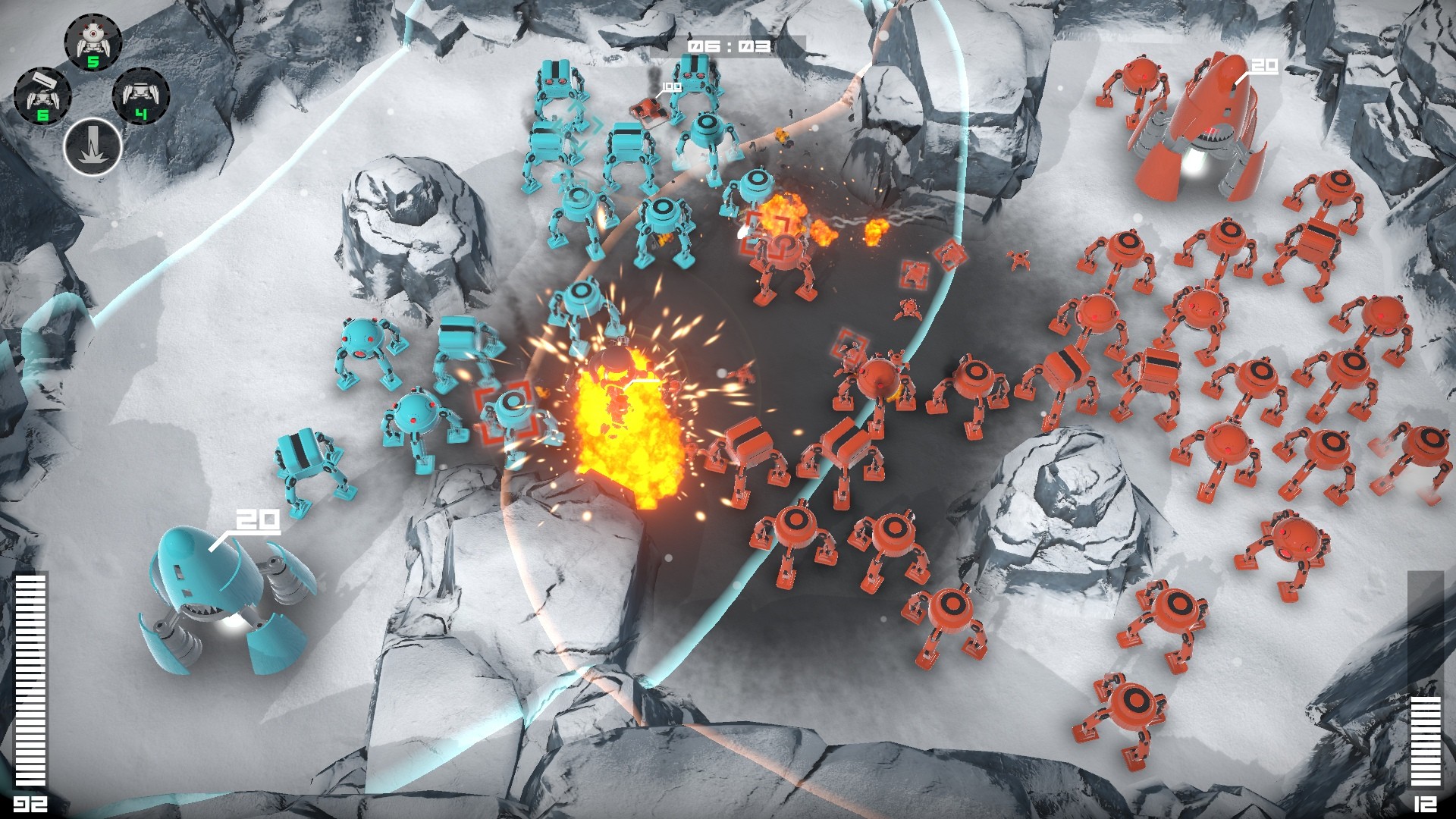 Экономика в игре тоже очень простенькая. Ресурсы постоянно капают. За убийство вражеских ботов и роверов дают бонус. За смерть своего ровера ресурсы немного отнимают. Возрождение ровера практически моментальное, что добавляет еще больше динамики в неистовое побоище. Но, чтобы не так часто умирать, у своего главного здания ваш ровер может вылечиться.