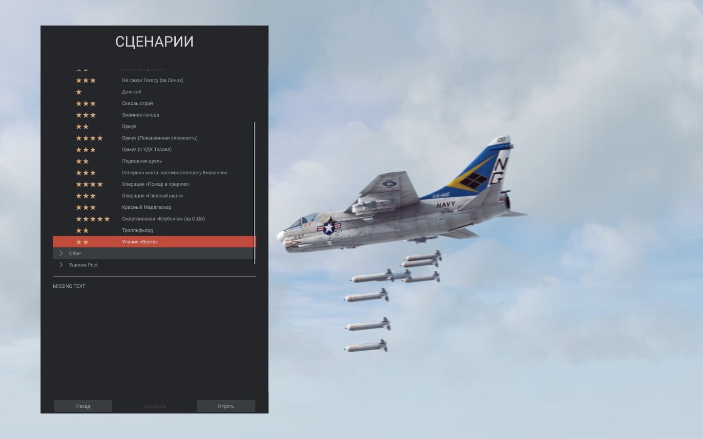 Sea Power: Naval Combat in the Missile Age относительно насыщена контентом, на данный момент имеется 33 миссии разной запланированной сложности, но, к сожалению, многие из них недоработаны в различных мелочах. В частности, полноценный брифинг перед миссией я видел примерно раз десять. В части миссий есть общая постановка задач и рекомендации разработчиков на пару абзацев, а в части — отсутствуют даже они, просто дали юниты, вывели в море и вертись, как хочешь. Так и хочется процитировать тов. В. И. Ленина: «Лучше меньше, да лучше!» — если уж игра заявлена сложной и симуляторной.
