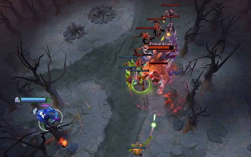 Второй пример — игра против иллюзий или героев, которые закрывают собой крипов. Бруда или Праймал Бист спокойно могут заслонить половину пачки, и в обычном режиме игрок часто ударяет кого угодно, кроме нужного юнита. Умная атака помогает обойти эту проблему: указатель определяет приоритет.