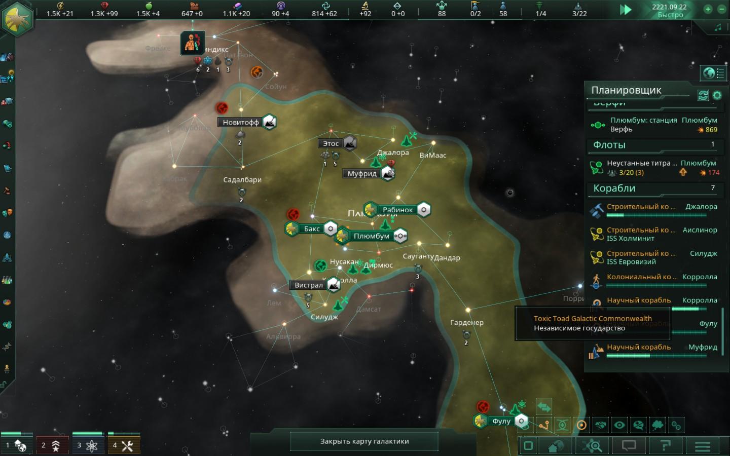 Однако стоит отдать должное разработчикам: на протяжении серии обновлений они умудрились сделать и такую простую боевую систему достаточно интересной. Главным образом за счёт того, что убрали «снежный ком» – это когда игроки строили один огромный флот и катком пролетали на нём по всей галактике. В текущем состоянии игры размер флотов ограничен, а поэтому их необходимо грамотно располагать по разным концам империи, чтобы враг не проник в самый центр через незащищённые границы.