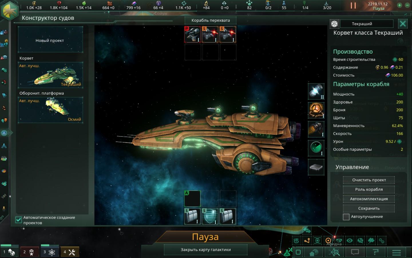 Но не может же быть игра просто идеальной? Я согласен. Поэтому расскажу о том, чем Stellaris похвастаться не может. Например, боевой системой – она очень простая и заключается в том, что при столкновении флотов друг с другом они просто автоматически сражаются. Да, в игре есть редактор кораблей, в котором можно устанавливать различные орудия, и да, эти орудия действуют по принципу камень-ножницы-бумага, основываясь на трёх основных видах: лазеры, пушки и ракеты. Но фактически гораздо больше решает число и развитость технологий. Флот, который больше, и на котором установлены более продвинутые орудия, выиграет, даже если он использует только ракеты, а у противника полно ПВО. Более экономически развитая империя всегда окажется победителем.
