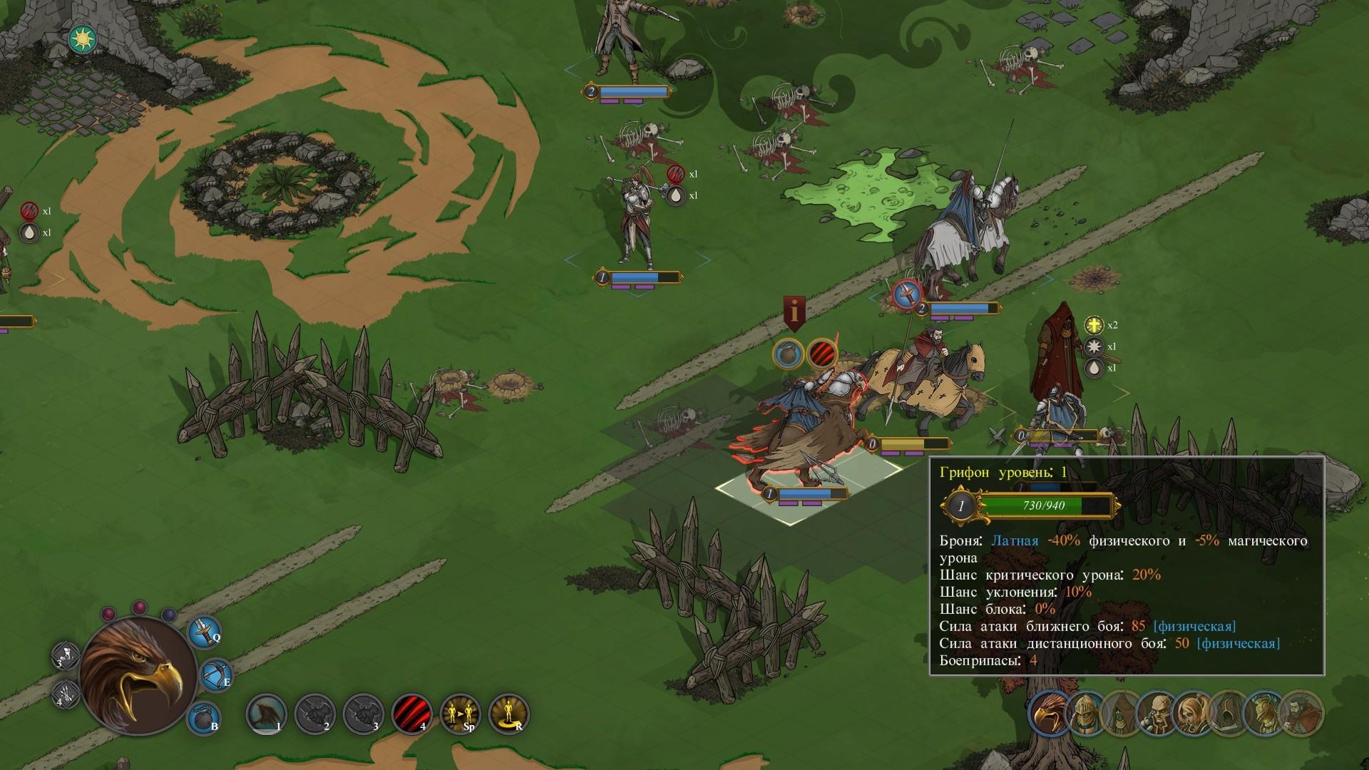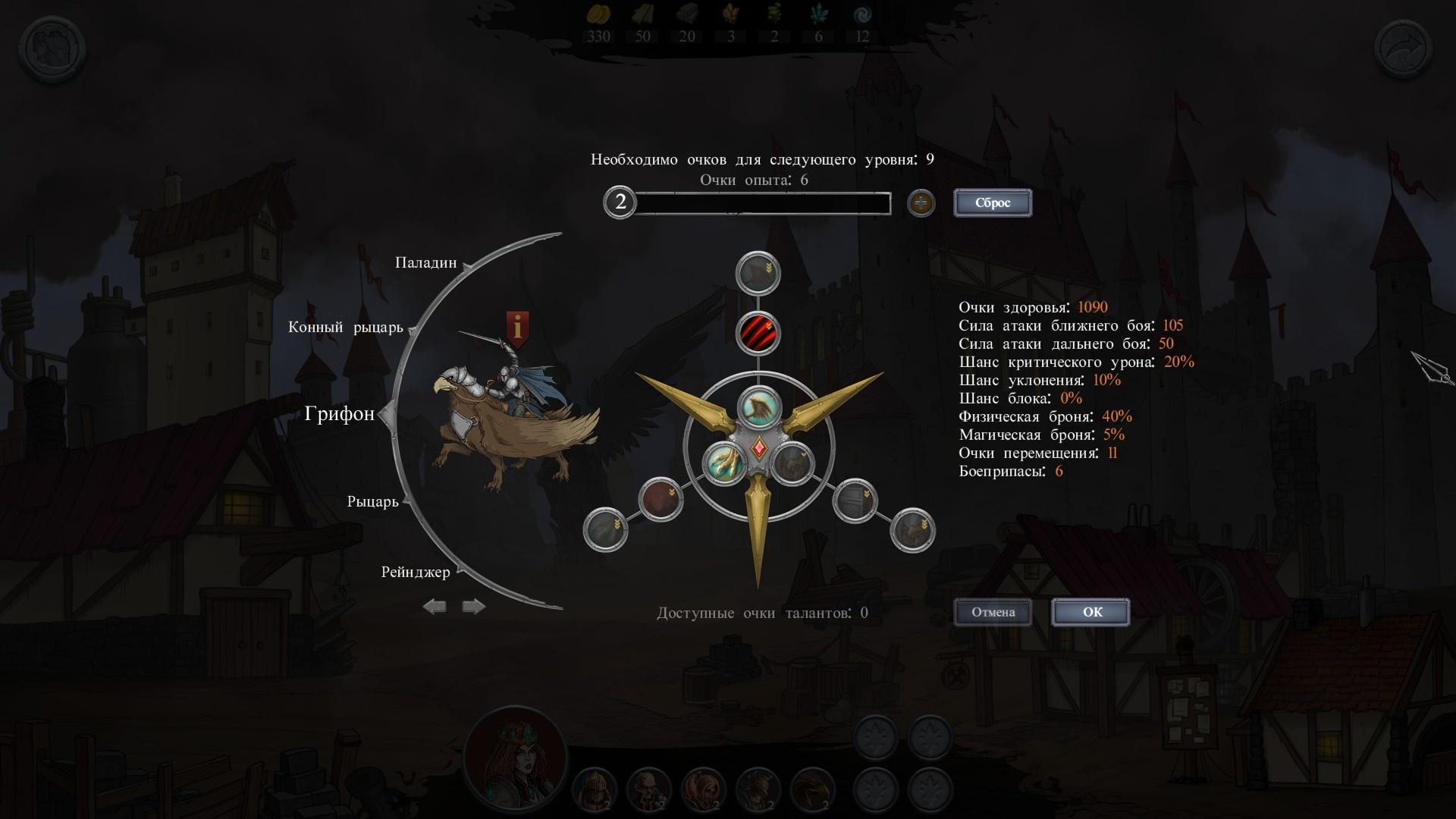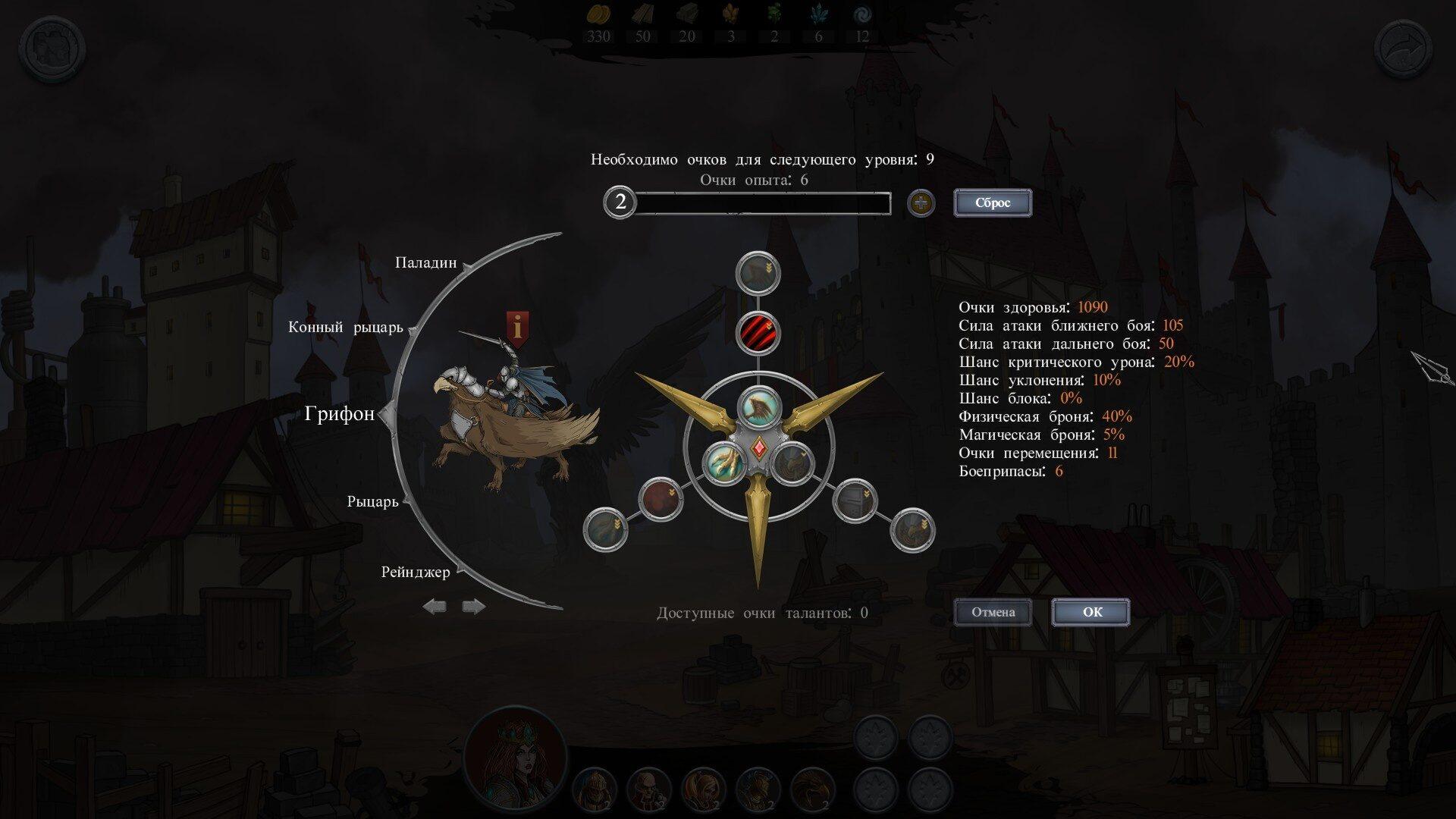В замке можно построить лавку алхимика и кузницу, чтобы экипировать вашу армию и ещё пару зданий, чтобы нанимать и воскрешать воинов, а также обменивать ресурсы. В лавке алхимика продаются расходники-зелья. Эффекты зелий разнятся от спасительных (получить иммунитет от физических атак на 1 раунд), до практически бесполезных (восстановить 50 очков здоровья, когда атака наносит под 100 и больше). Чтобы испить зелье, придётся пожертвовать очком действия, поэтому надо десять раз подумать, стоит ли вообще пить, когда можно… бить! В кузнице продают оборудование на повышение атаки, защиты, здоровья и прочих атрибутов. Вариативность предметов оставляет желать лучшего. На каждый слот найдётся всего одна подходящая вещь, в боях новые предметы не выпадают, за исключением зелий. На мой взгляд, пусть лучше бы было поменьше слотов у каждого персонажа, но побольше вариативность предметов, больше лута!
