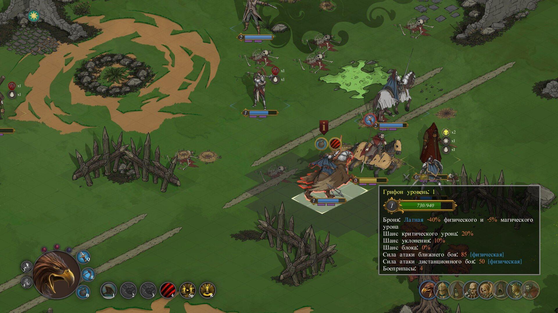 Сами миниатюрки «толстые» и занимают далеко не одну клетку, отчего бой часто напоминает толкотню. У людей, за которых идёт повествование кампании, самый малогабаритный юнит — стрелок, занимает 2 клетки. Средние — 4 клетки, большие — целых 6 клеток. Благо, всем юнитам выдали дистанционное оружие, а то иногда даже подойти не получается, уж больно неповоротливые юниты. И у рыцаря ближняя атака на несколько клеток, видимо из-за копья. Противник тоже путается в своих же юнитах, так что с тактической точки зрения, баланс есть.