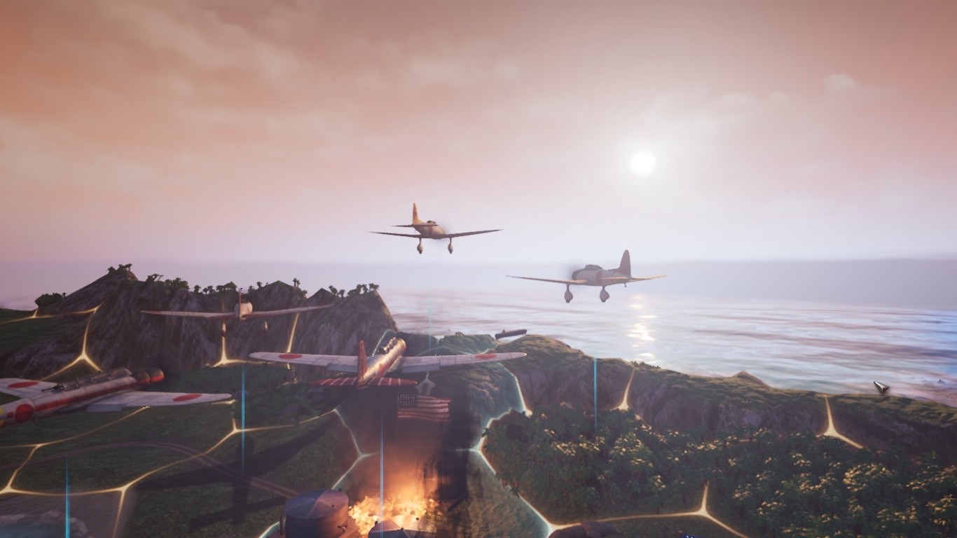 Что особенно радует: если в миссии встретился линейный корабль типа «Колорадо», или же какой-нибудь тяжёлый крейсер типа «Могами», то отрисованы эти суда будут максимально близко к реальности. Я даже специально искал в интернете фотографии тех лет. Да, всё верно. Детализация, конечно, не на 100%, но для стратегии весьма добротно. Для сравнения – в том же Order of Battle весь флот изображён весьма схематично. Узнаваемы и все типы самолетов. Причём у тех же японцев окраска самолетов морской авиации будет отличаться от окраски авиации армейской. Закрылки, патрубки, технические лючки тоже отрисованы с вниманием. Правда, увидеть всё это обычно удается только при «кинематографическом» приближении камер.