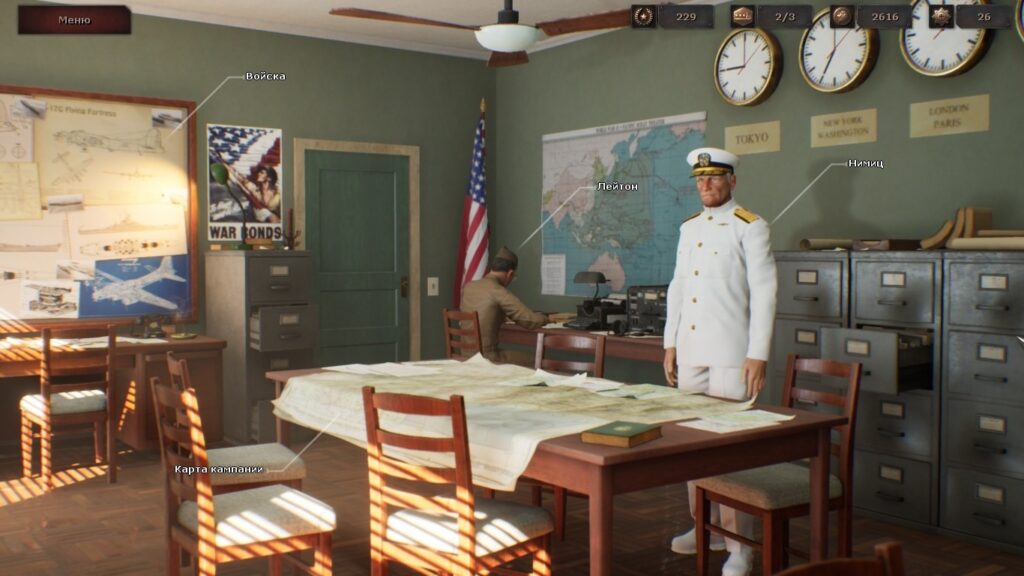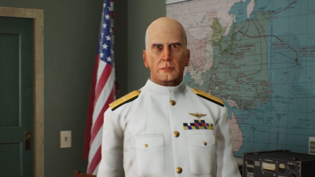 Что же, меню полюбовались. Можно и запустить новую игру. И вот тут игрока ждёт натурально холодный душ. Игровые вставки. Они действительно ужасны. Созданные на игровом движке, они прекрасно показывают боевую технику и корабли. Правда, звуковое сопровождение несколько подкачало: главный калибр линейных кораблей в интро стреляет со звуком какой-то скорострельной берданки. Дальше только хуже. Игра зачем-то показывает нам лица командующих крупным планом. При этом бедняга Ямамото похож на вполне себе реальную макаку. Министр сухопутных войск Империи Тодзио Хидэки напоминает точно такую же макаку, разве что в очках. Ощущение такое, что эти исторические деятели были срисованы разработчиками с агитационных плакатов времен Второй Мировой. Там верхушку Японской Империи действительно изображали очень… обезьяноподобно. Или на такое вот видео скинулись последние ветераны Перл-Харбора?