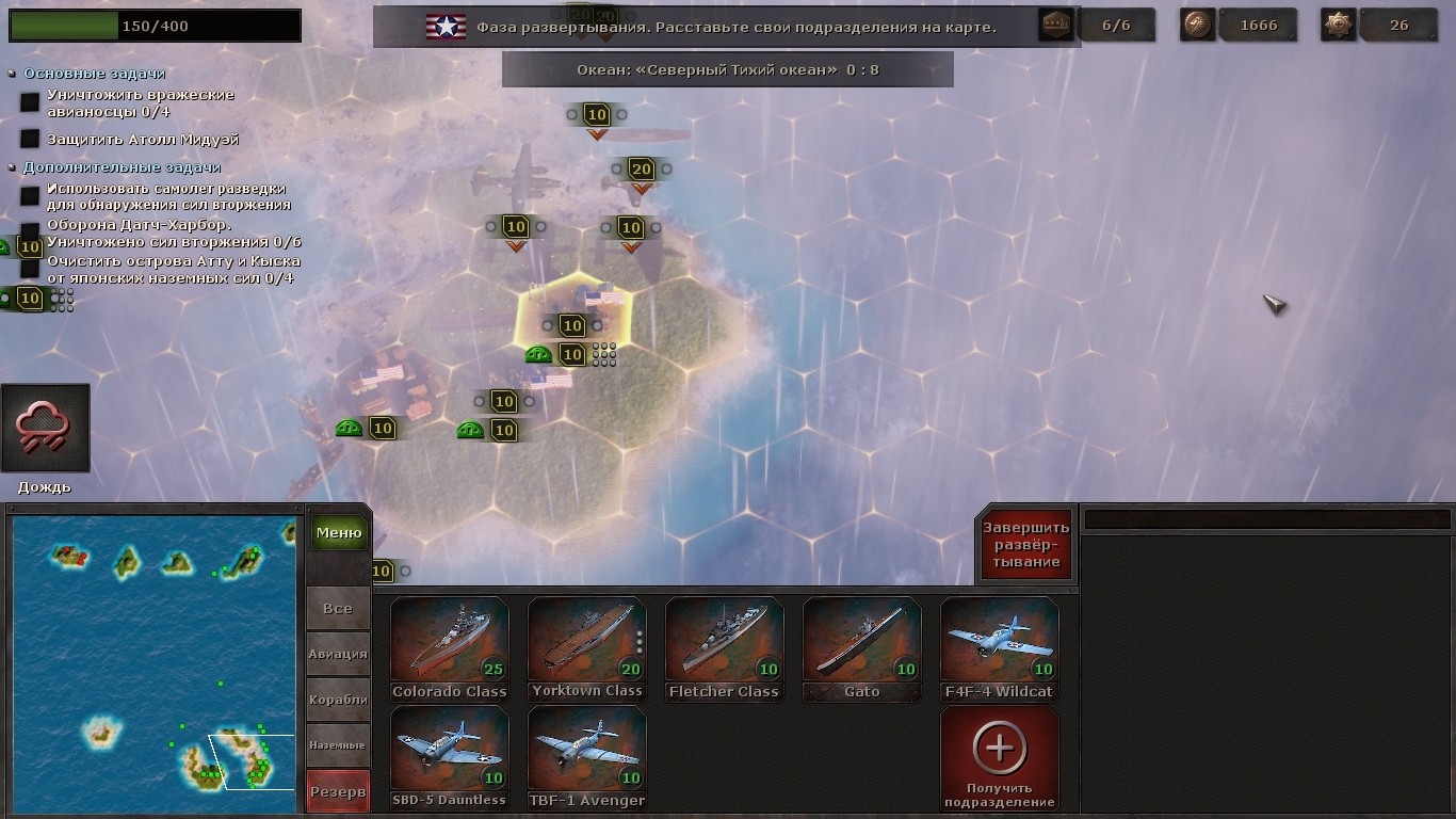 Вторая попытка штурма американской военно-морской базы с самого начала пошла как по маслу. Не пытаясь рисковать, я выслал авиаразведку (дополнительная опция за очки командования). Стараясь не попадать в зону действия береговых батарей раздолбал эсминцами радарные вышки и ближайшие точки ПВО. Разделил цели между знаменитыми «Накадзимами Тип-97» и пикировщиками D3А. Обвесил бомбами испытанные «Зеро».