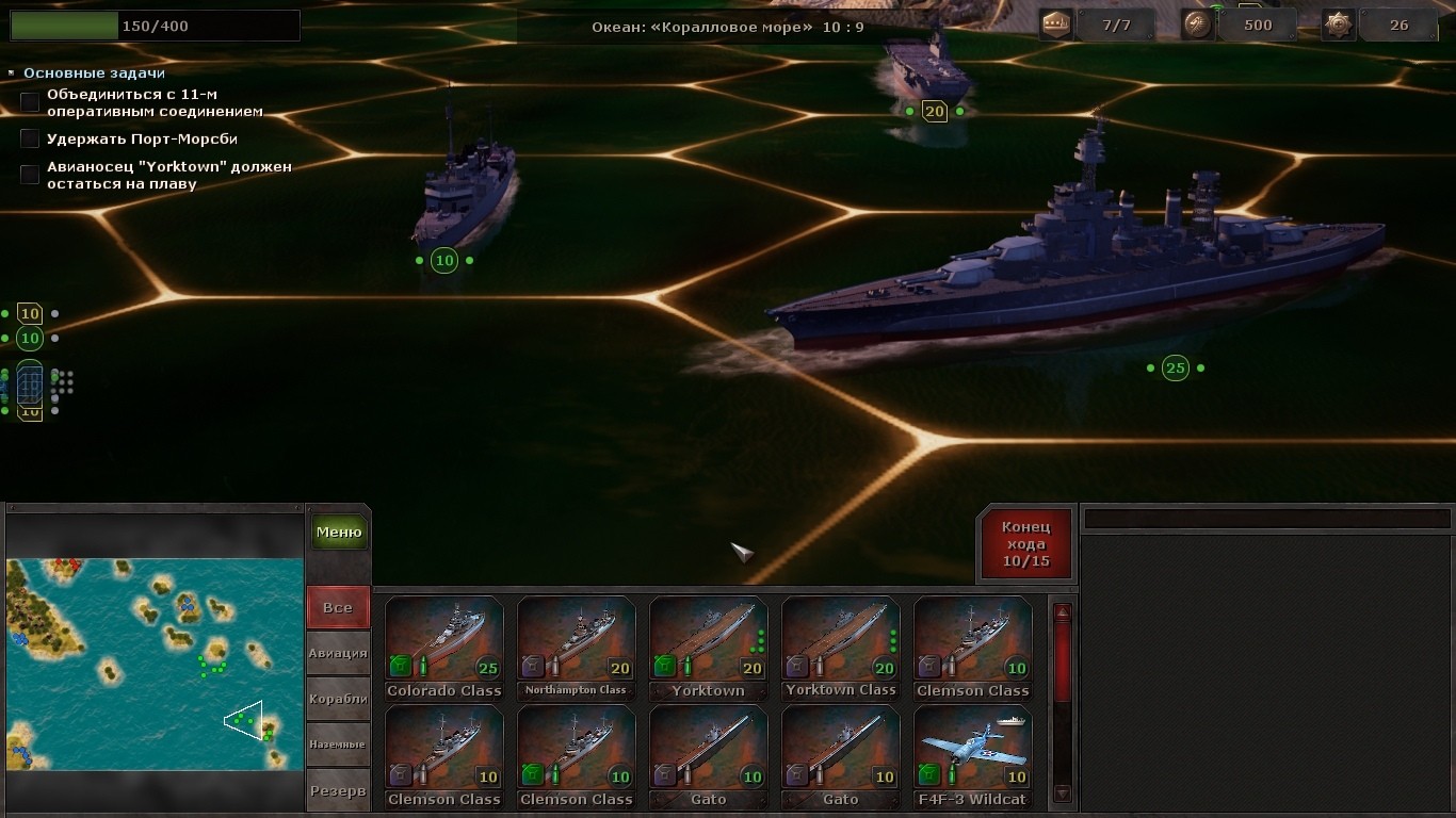 Ничуть не легче кампания за США. Знаменитая битва в Коралловом море даёт чёткие указания: защитить военно-морскую базу и утопить два авианосца самураев. Просто? Кажется, что очень, до тех пор, пока не приходит понимание: помимо несчастных двух авианосцев в здешних морях хозяйничает полноценная флотилия. Да и торпедоносцы с наземных баз не дадут скучать.
