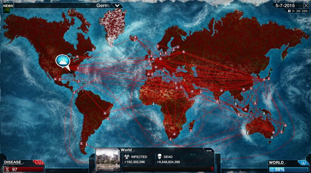 В первую очередь стоит упомянуть легендарный симулятор инфекций Plague Inc. Игра доступна как на PC, так и на мобильных платформах. В ней вы сможете создать свою инфекцию и попытаться заразить весь мир. Игра довольно реалистично симулирует механизм распространения инфекции по миру и даст хорошо понять, почему так важно оставаться дома и соблюдать меры безопасности. Кстати, игра была запрещена в Китае как раз из-за своей реалистичности.