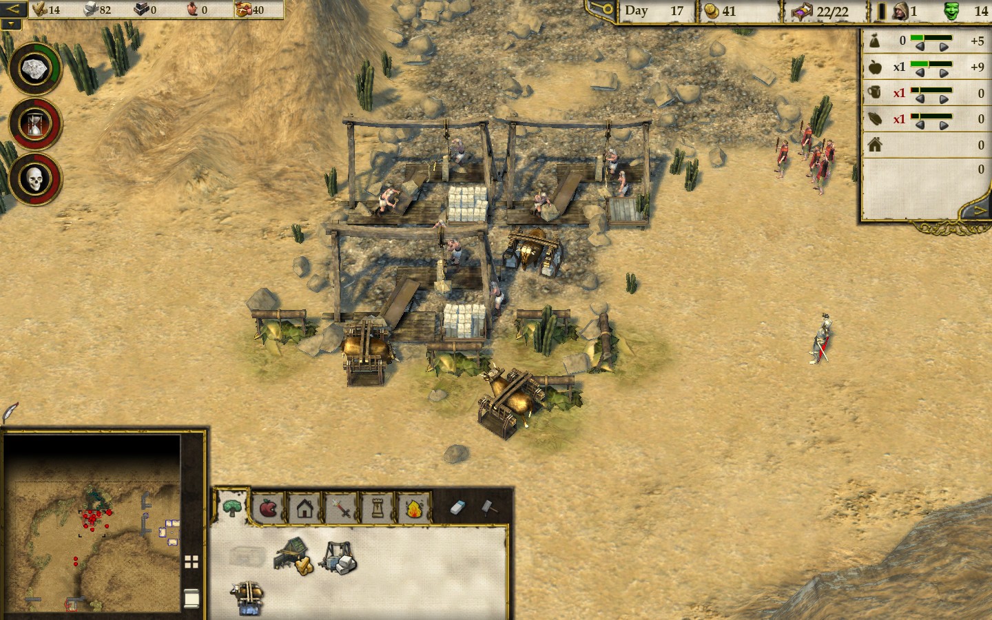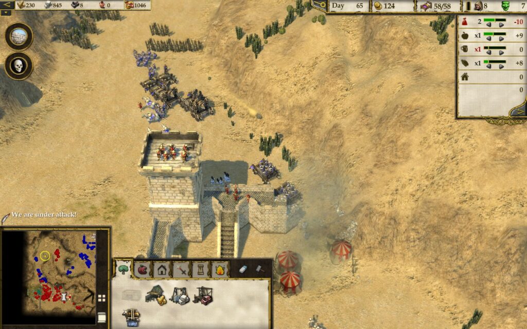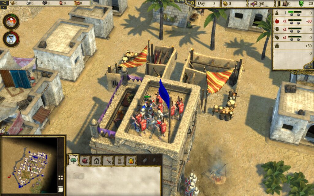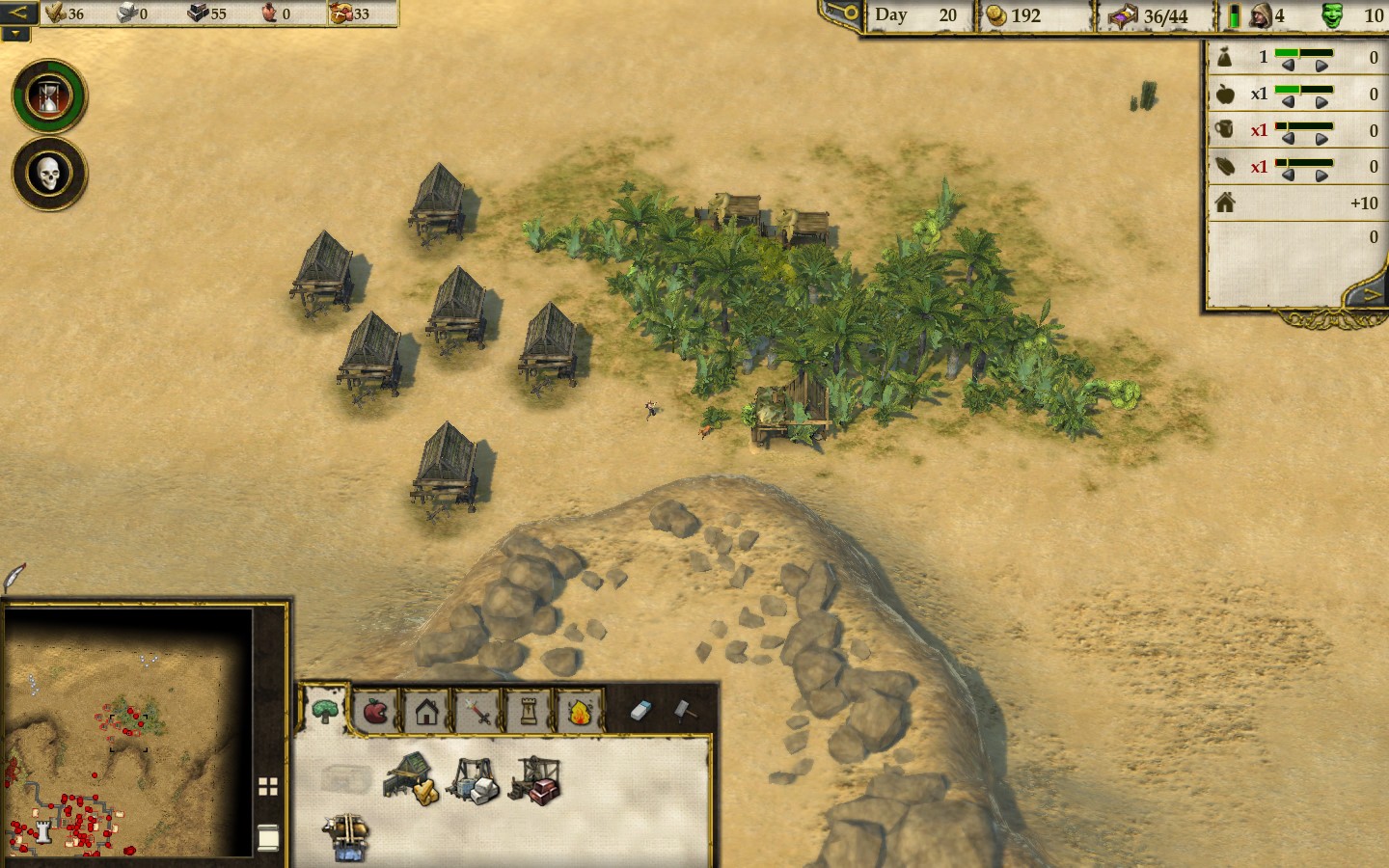 Общая цель экономки Stronghold Crusader 2 – нанять как можно больше солдат, чтобы уничтожить противника. Вообще, эту игру стоит рассматривать как классическую RTS, а не как экономику про строительство замков. Управление поселением мало изменилось с предыдущих частей. Это всё те же фермы, свиньи, сыр, хмель и яблоневые сады, которые крестьяне чудесным образом выращивают в пустыне. Всё это можно производить на ограниченных кусках земли, оазисах, что порождает интересные геймплейные ситуации – например, оазис может находиться за пределами замка, из-за чего его невозможно будет обнести стенами. Ударяя по такому оазису, враг не сломит вашу оборону, но с лёгкостью сломит экономику.