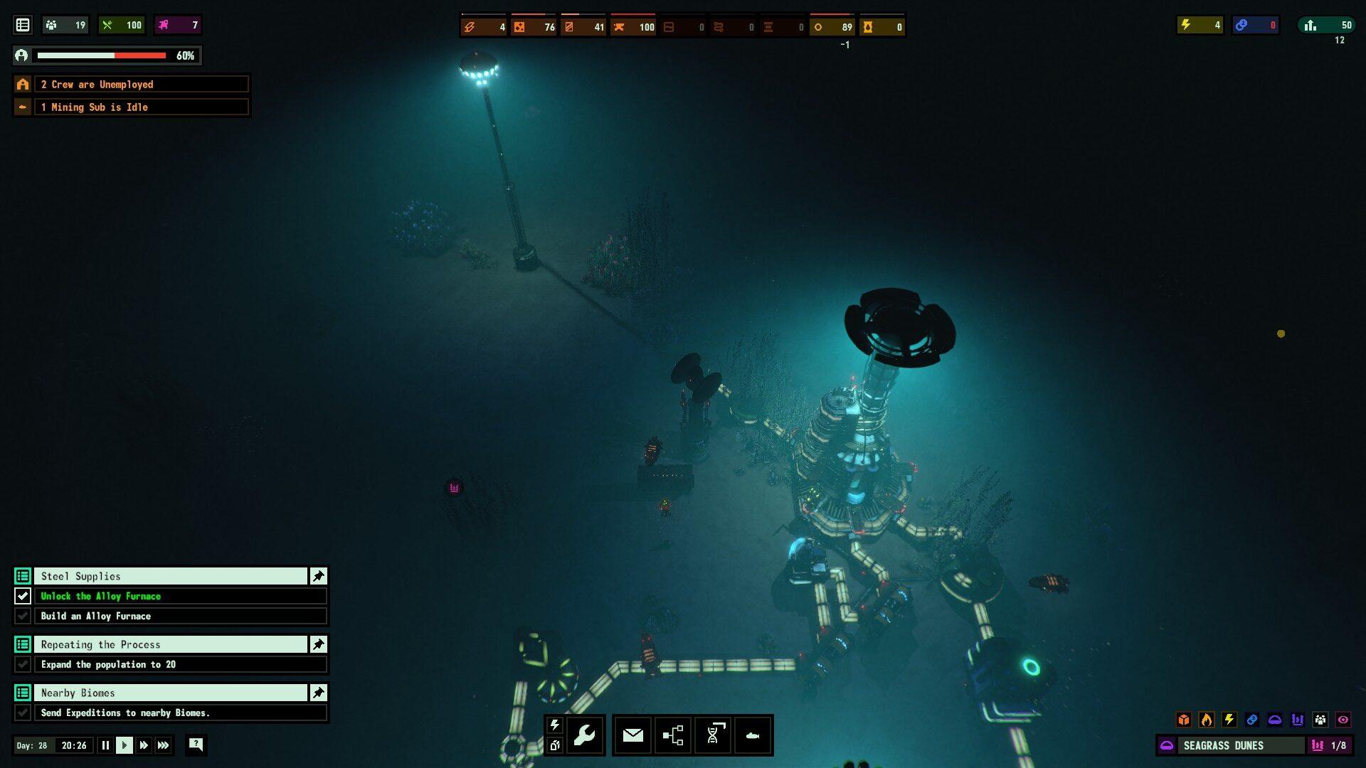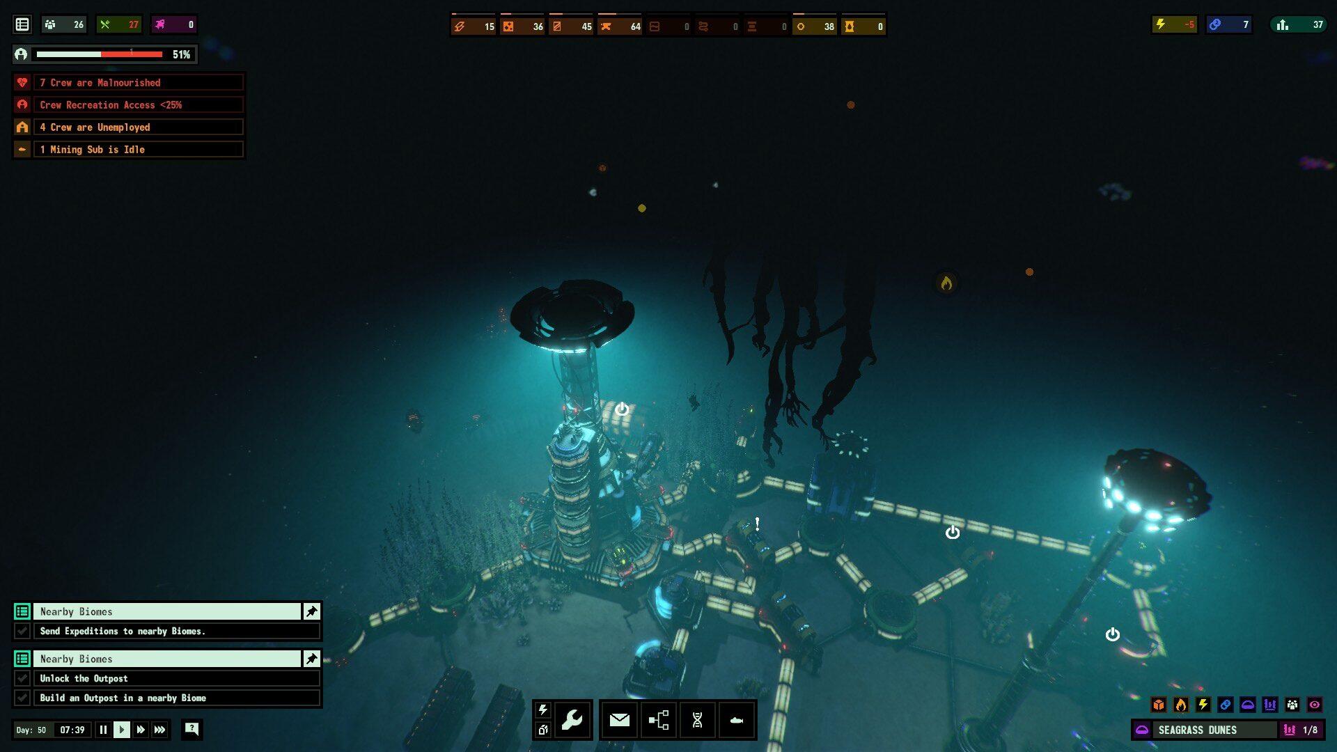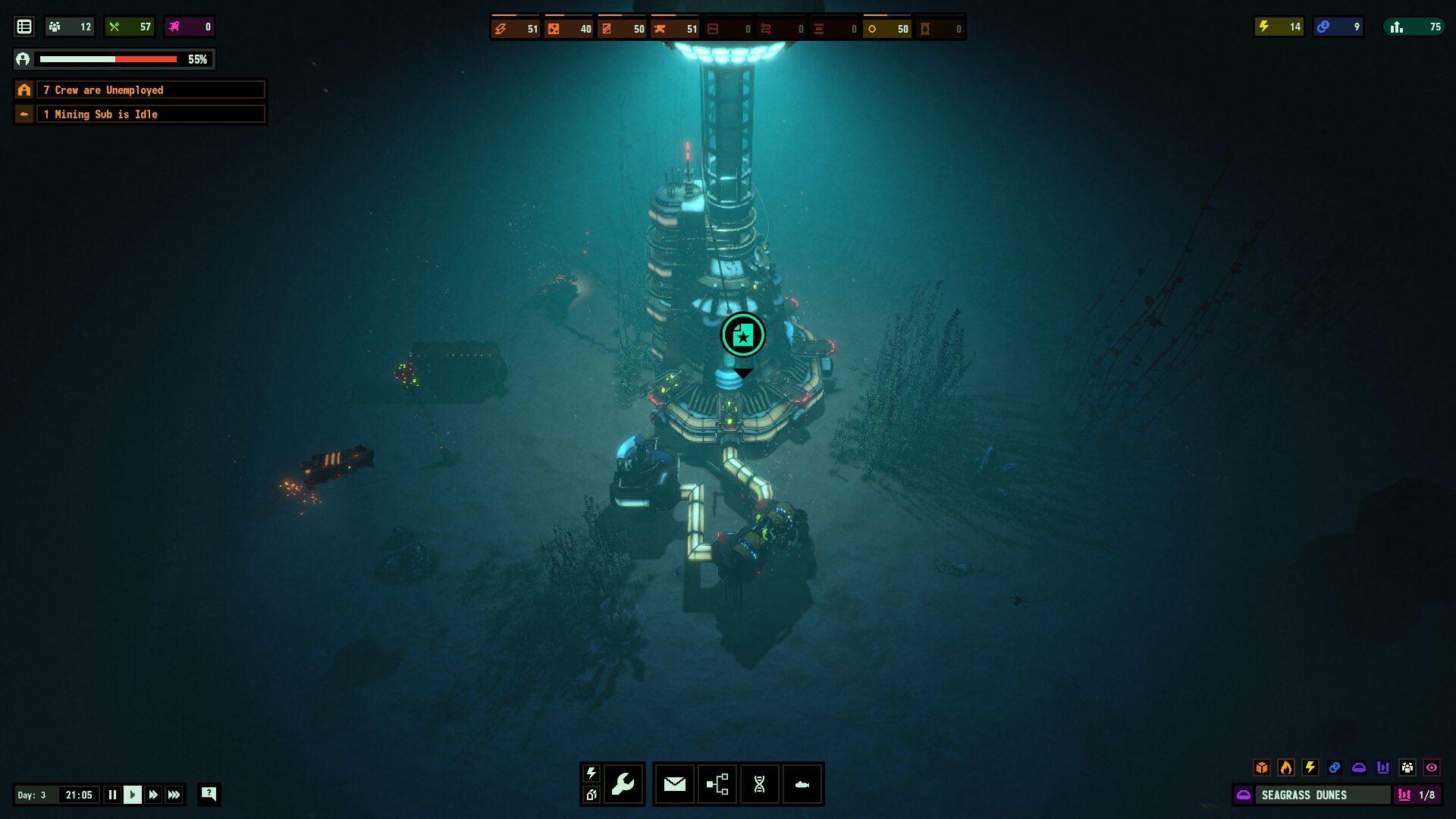 Продолжая разговор о дизайне игры, стоит отметить, что по сюжету её действие разворачивается в 1976 году и, соответственно, для строительства глубоководной базы применяются технологии, людям в 1976 году казавшиеся невероятно продвинутыми, но при взгляде из 2023 смотрятся архаичными. Здания выглядят излишне массивными, а подводные лодки громоздкими и неэргономичными.