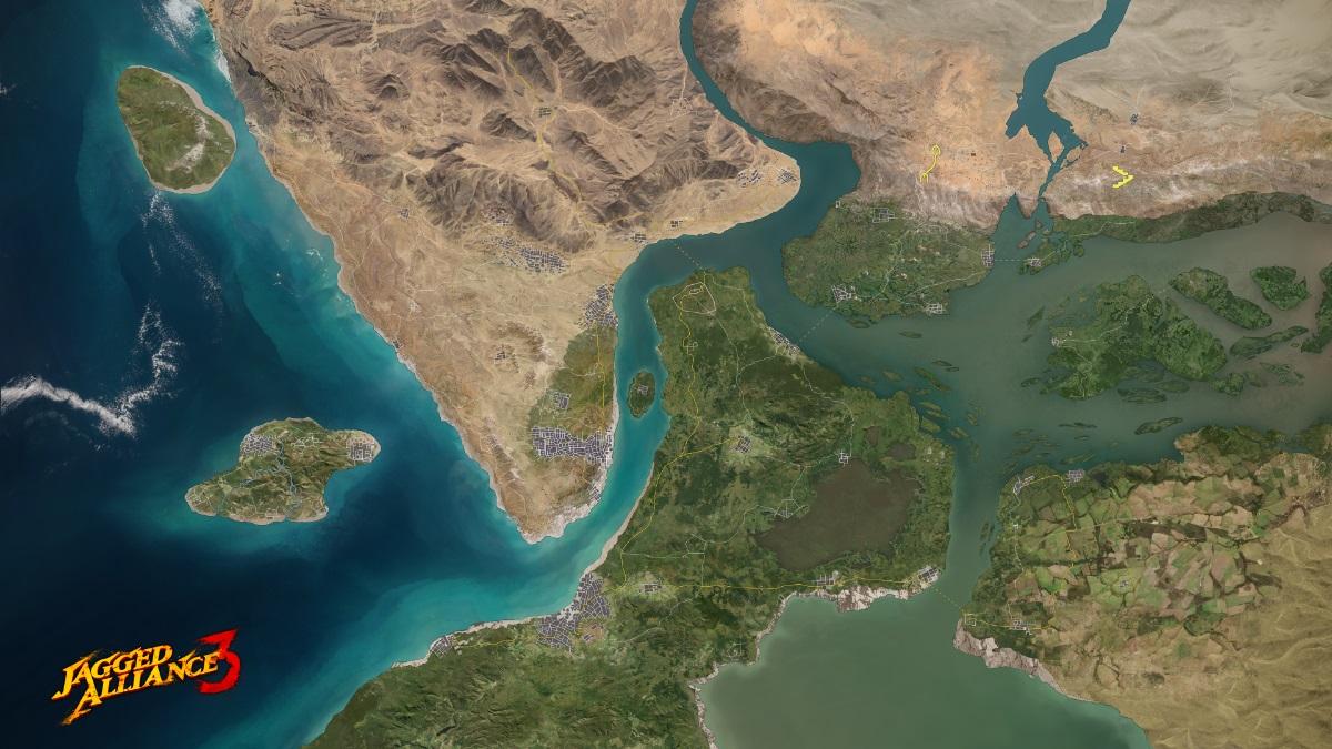Значительную часть геймплей в Jagged Alliance 3 будут занимать пошаговые тактические битвы, но не менее значительной станет и стратегическая часть. Она будет представлена Долиной Аджани, разделённой на более чем 160 секторов, включая подземные.