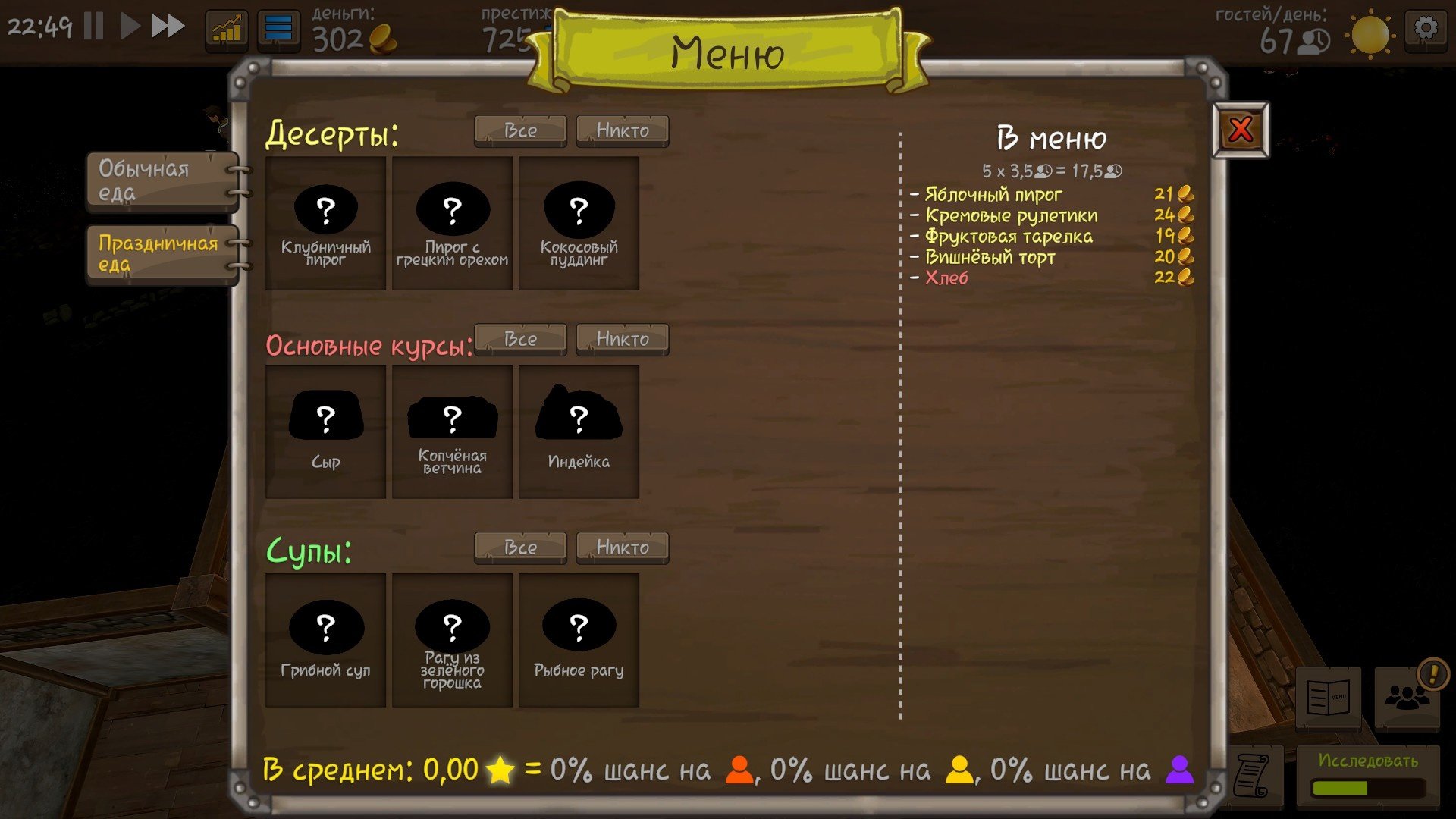 По мере игры, когда у вас появятся несколько этажей и большое количество посадочных мест ивенты будут подстраиваться. Названия и требования останутся теми же, но количество гостей и денежный бонус будут расти, чтобы быть актуальными для игрока на протяжении всей игры. Подобное внимание от разработчиков даёт плюсик в карму.
