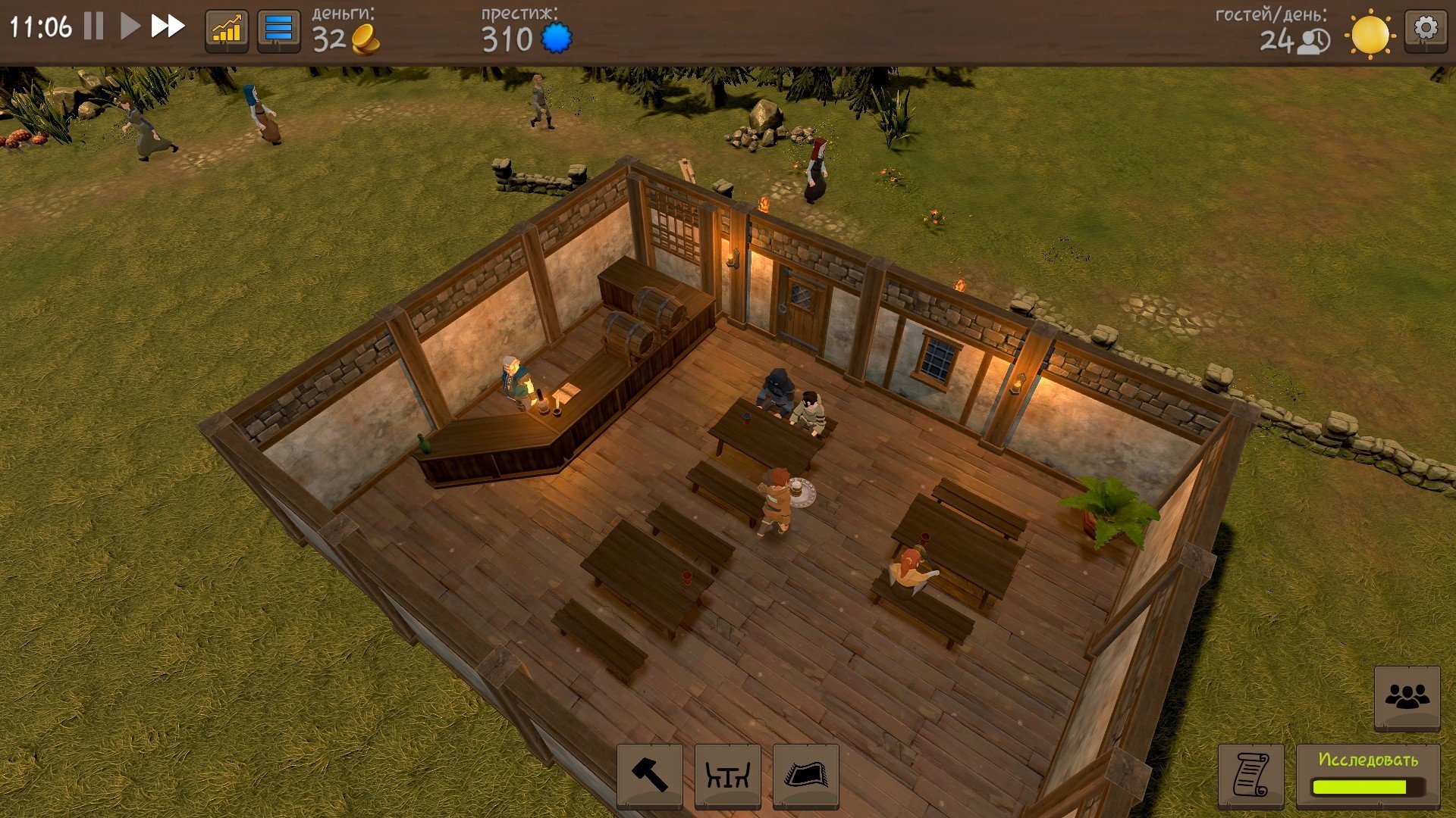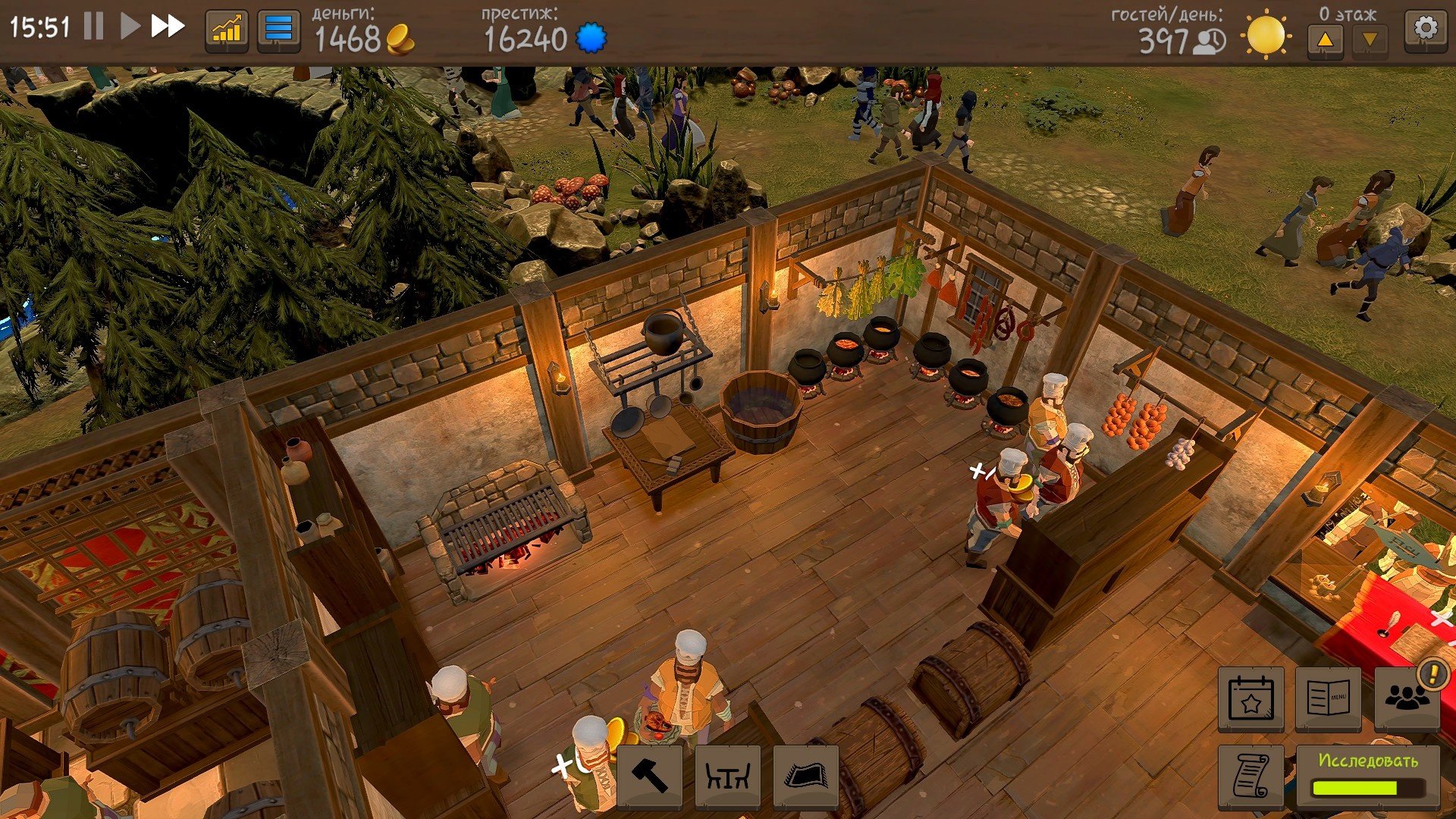 Со временем станет доступна выдача еды на улицу через специальное окно (да-да, прям МакАвто 14 века). А также станет доступен отель, у каждого номера будут звёзды, зависящие от того, как номер обставлен. Цены на номер вы регулируете сами.
