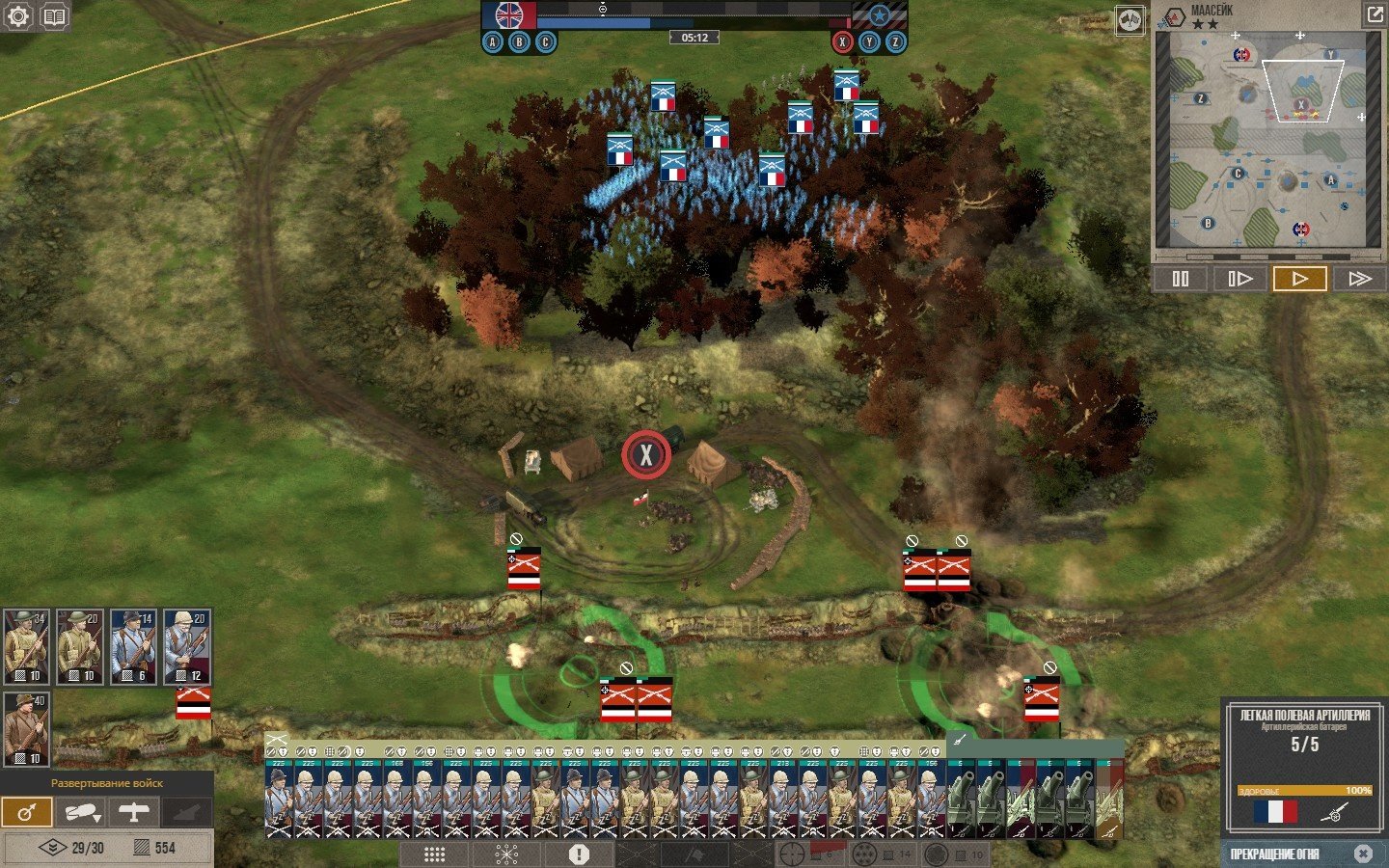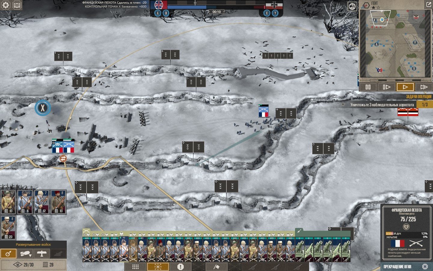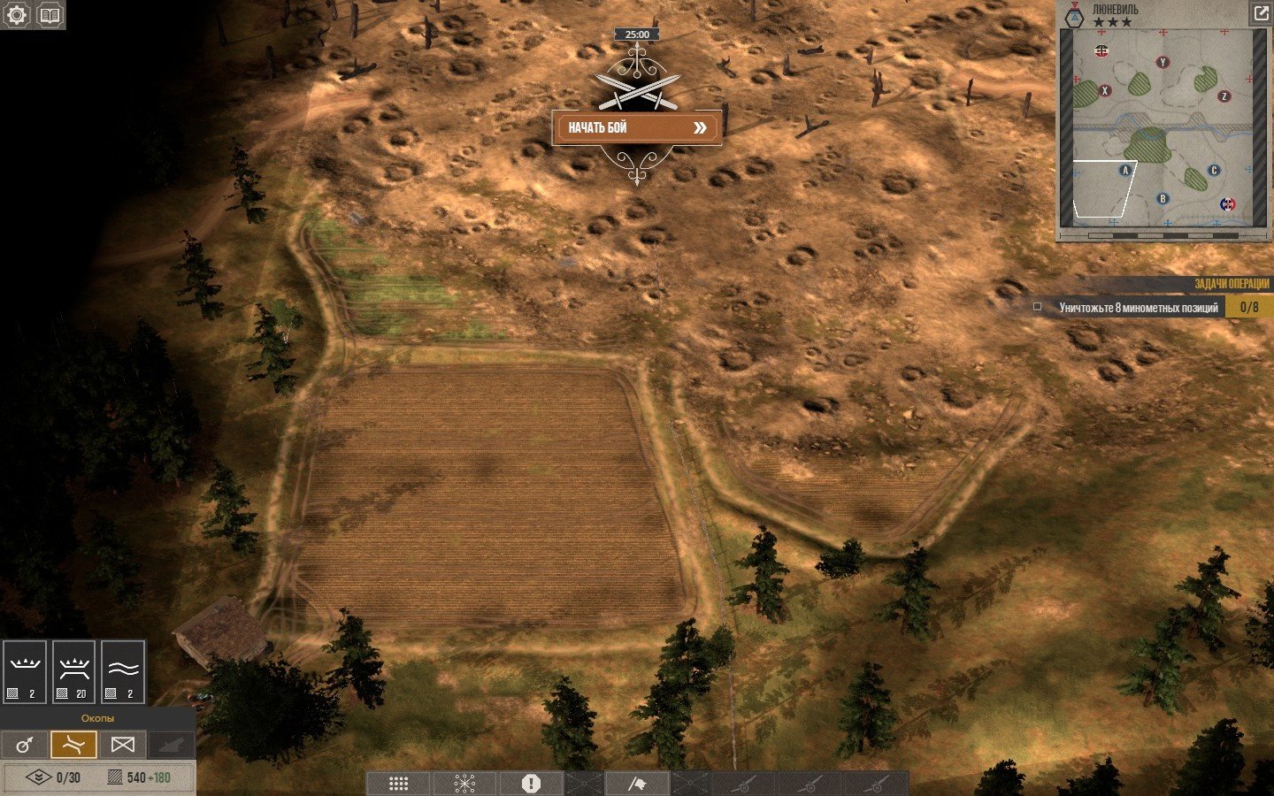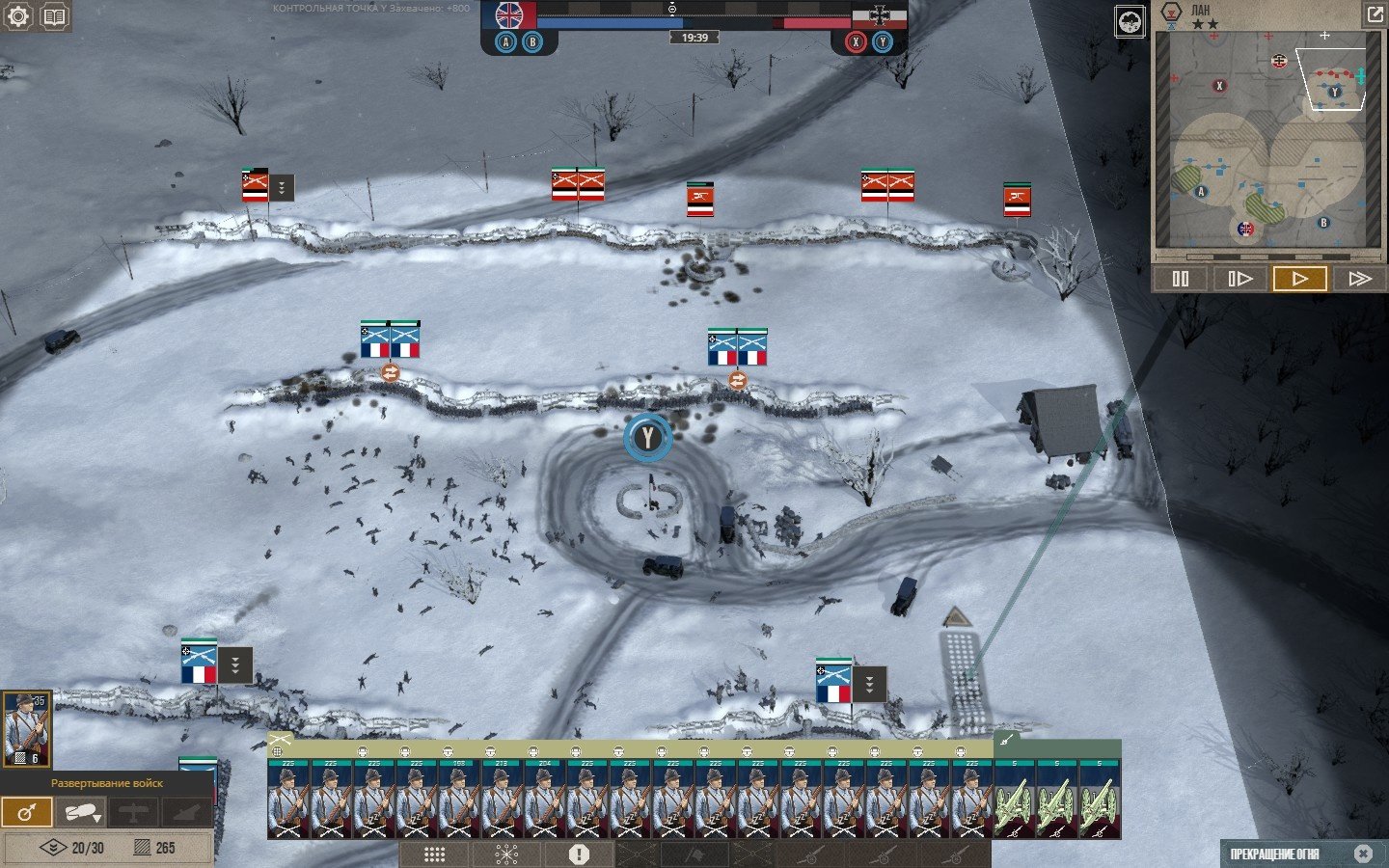Впрочем, и в самом окопе возможны, скажем так, заторы. Когда противник пытается контратаковать только что занятый окоп, ты бежишь ему навстречу в надежде подловить и хоть немного побить по частям… И в итоге 30-40 секунд войска просто стоят где-то между окопами, не двигаясь.