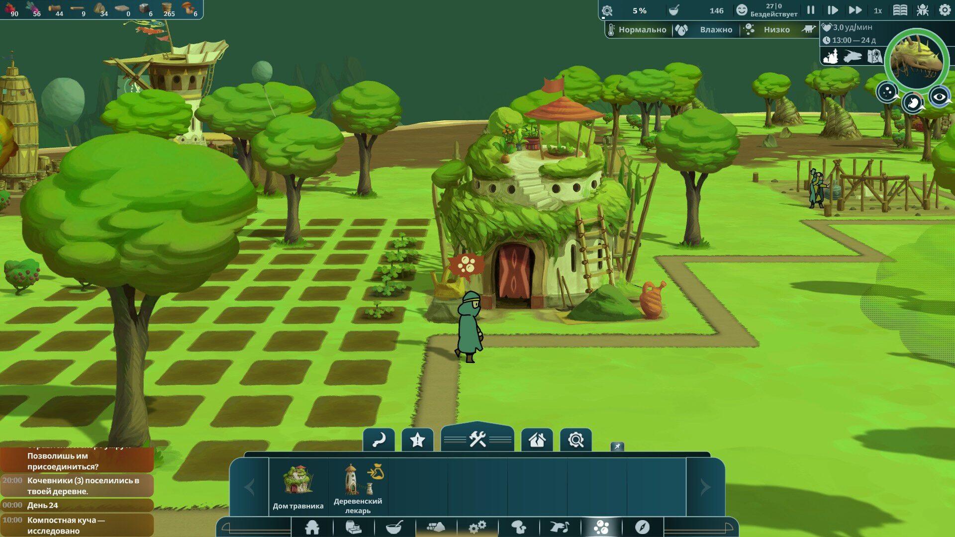 Эти клавиши – фактически одни из самых ходовых, и для такой роли у них неудачно сделано буквально все, что можно: выбор подменю, невозможность привязки конкретным действиям, размер, отсутствие горячих клавиш. Здесь стоит вспомнить тот самый легендарный Dwarf Fortress, чей интерфейс чудовищно неудобен для новичка (и сохраняет ряд серьезных проблем, даже если наиграны тысячи часов), но позволяет выполнить ряд критически важных действий с просто невероятной скоростью, напоминая этим Vim (свободный текстовый редактор). Нет, НИ В КОЕМ СЛУЧАЕ тут не утверждается что интерфейс DF удобен «в общем случае», и ещё раз можно подчеркнуть: он от начала времён содержит ряд критических проблем (обещают, что большая часть будет исправлена в Steam-версии), однако значительная часть действительно важных действий, десять раз найдя их в хитросплетениях подменю и особенностей настройки, можно выполнить практически мгновенно, что не даёт сделать ни один другой из перечисленных ранее симуляторов колонии. Возможно, подобное наблюдение совершенно лишнее в обсуждении довольно мягкой по отношению к игроку The Wandering Village. Можете считать это ворчание признаком того, что автору хотелось бы, чтобы в эту игру было приятно вернуться, а не только один раз пройти, так как деревня на спине гиганта определённо заслуживает вдумчивого руководства.