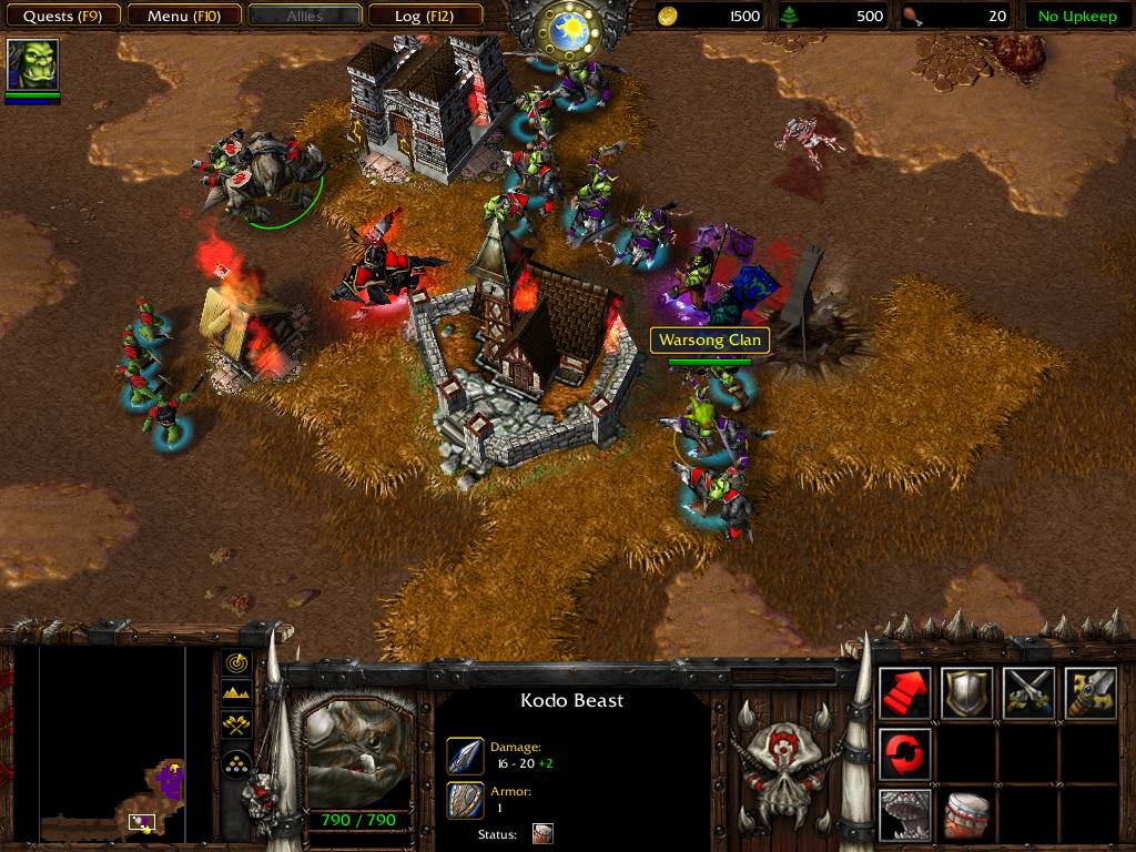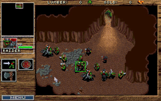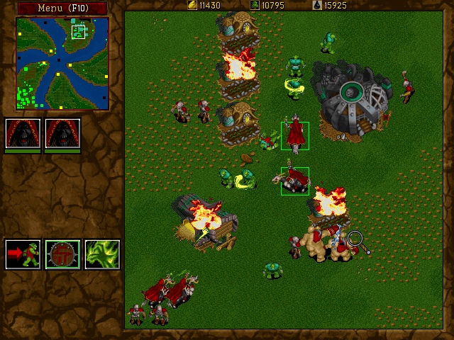 На ниве фентезийных стратегий могучим колоссом стоит серия игр Warcraft от студии Blizzard Entertainment. Warcraft: Orcs & Humans вышла в 1994 году. Игра повествует о конфликте людей и орков в сеттинге, очень похожем на мир Толкиена. Ключевой инновацией, которой могла похвастаться первая часть легендарной серии – возможность выбора нескольких юнитов одновременно. Как мы знаем, это решение повлияло на все последующие RTS и сейчас трудно представить современную стратегию без «рамки», с помощью которой можно «обвести» юнитов и послать в бой. Правда в Warcraft: Orcs & Humans можно было выделать не более 4 юнитов за раз, но это всё равно лучше, чем Dune II, в которой каждому юниту приходилось отдавать приказы по отдельности.