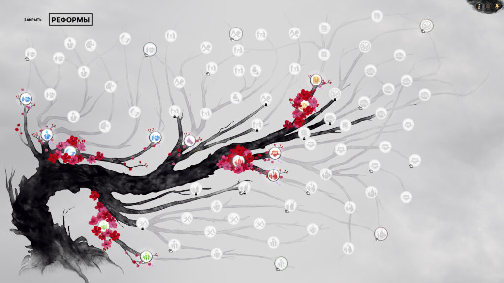 Технологии реализованы, на мой взгляд, более интересно, чем в прошлых частях Total War, но называются они здесь “Реформами”. Технологическое древо более ветвистое, технологий больше, чем обычно, а описание к ним достаточно интересно почитать.