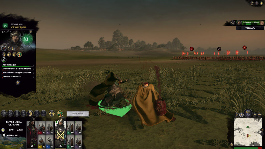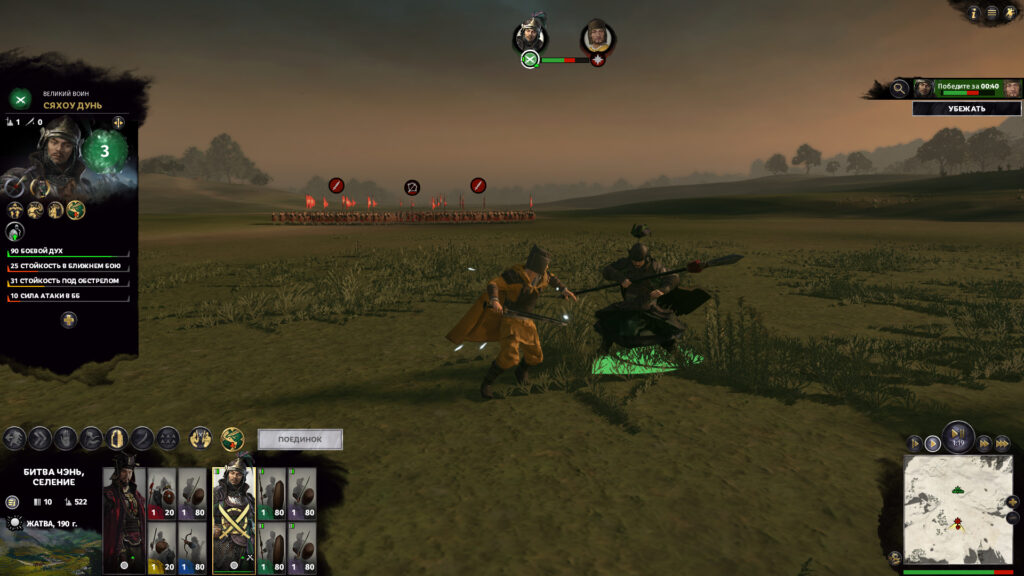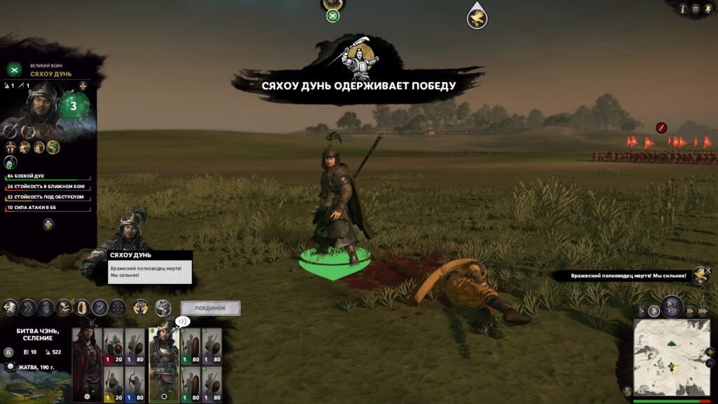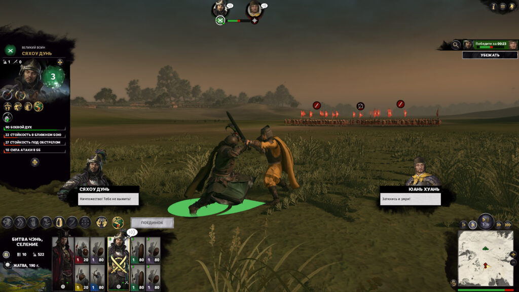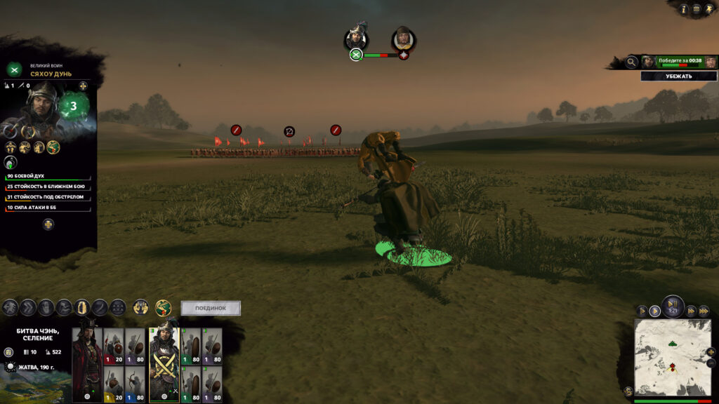 Но разработчики смогли привнести и кое-что новое, а именно – битвы военачальников в режиме “Романа”. Как я говорил, военачальник в этом режиме – это самостоятельный юнит, который может делать вражеской армии довольно больно. Именно поэтому в бою всегда стоит вызывать на дуэль вражеского военачальника. В дуэли они сомкнутся в битве в самый разгар сражения, и победивший даст бонус своей армии. Смерть военачальника, как обычно, внесёт смуту в ряды врага.