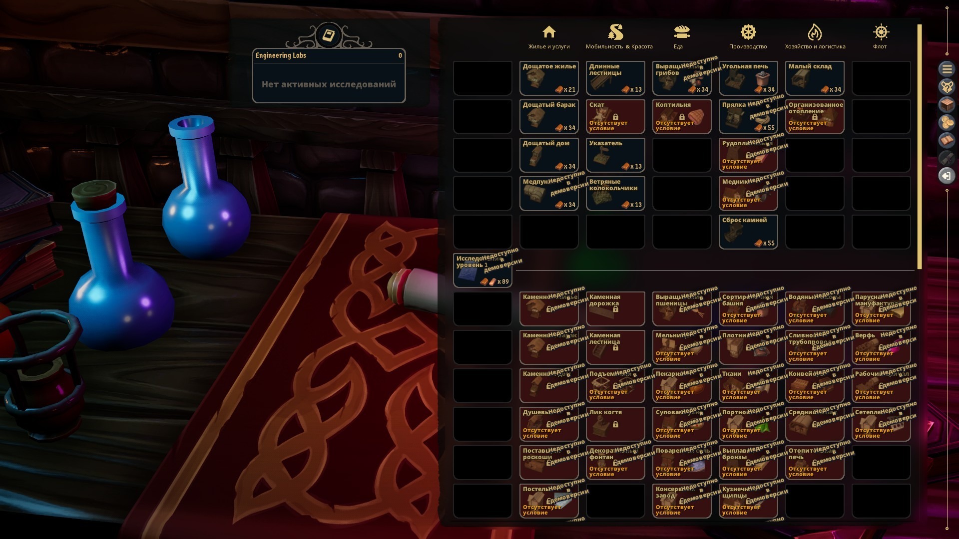Древо исследований, на первый взгляд, объёмное. Но в демоверсии, по ощущениям, недоступно около 95% его состава, а имеющиеся 5% нельзя самостоятельно исследовать – банально нельзя построить исследовательский центр. Пока что их можно открыть только получив в награду от котов за перевыполнение плана по сбору налогов.