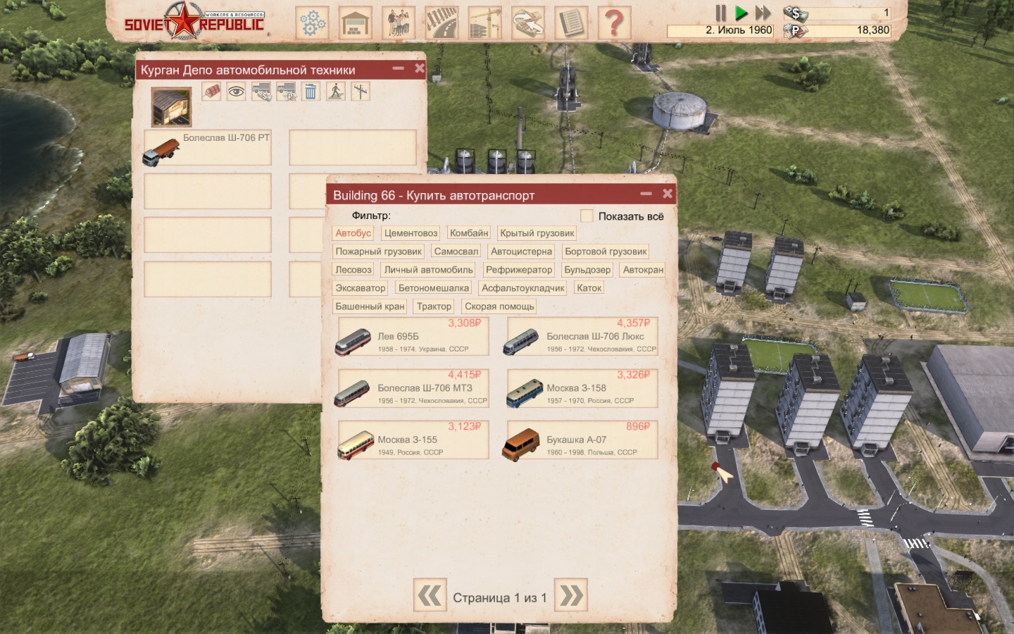 На текущий момент среди дорожного транспорта имеется очень большое разнообразие от автобусов и грузовиков до очень специфичной техники вроде асфальтоукладчика и башенного крана. У железнодорожной техники различия сводятся к разным локомотивам и вагонам, перевозящим различные типы грузов. Технику можно покупать как за доллары, так и за рубли, и она будет отличаться (за рубли – советская, за доллары – западная).
