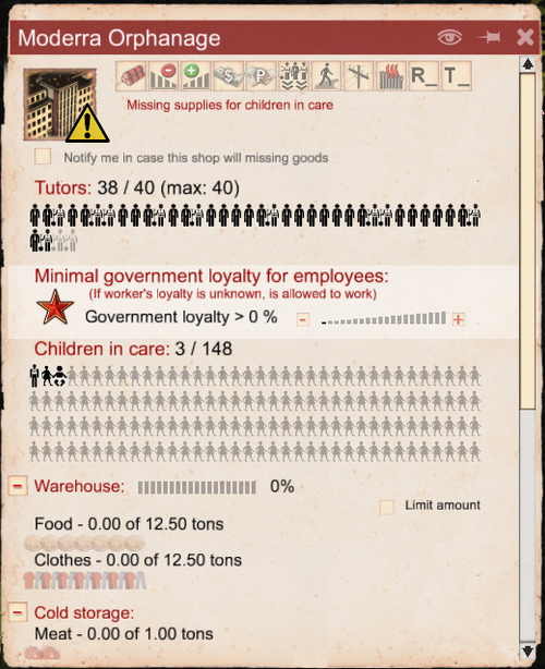 Конечно, как и с любой другой новой механикой, мы столкнулись с некоторыми проблемами, вроде той, когда о заключённых в детских домах заботятся годовалые воспитатели. Но не бойтесь, «заключённые» – это лишь временное название жителей детских домов. Это к тому, что есть некоторые проблемы, которые нам нужно решить во время разработки. Есть люди, которые часто задают вопрос: «Почему вы не фиксите баги в существующих механиках, прежде чем вводить новые?». Нашим ответом им станет то, что с каждым добавлением в игру чего-то нового появляется риск, что что-то, что уже в ней есть, может сломаться. Это значит, что мы можем потратить часы на исправление бага, и затем, после добавления новой механики, обнаружить, что нужно проделать то же самое ещё раз. Это пустая трата времени. Впрочем, это не значит, что мы не исправляем критические проблемы; это лишь означает, что мы продолжаем добавлять новые функции в игру, чтобы на более поздних этапах разработки мы смогли исправить все баги.