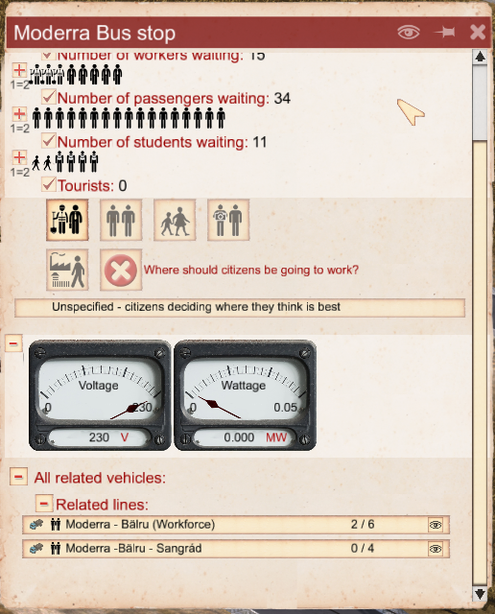 Теперь позвольте нам упомянуть о некоторых небольших улучшениях, что мы сделали за прошедшие недели. Вы, скорее всего, уже знакомы со списком транспортных средств, который отображается на платформах и станциях. Мы изменили его и теперь вместо него вы будете видеть маршруты привязанной техники. Ещё одна вещь, которую мы добавили: теперь при открытии интерфейса автобазы вы сможете увидеть количество связанных с ней задач. Лимит для автобаз по-прежнему будет иметь значение 20 и мы полагаем, что вы будете использовать более одной автобазы, если вам нужно обслужить более 20 зданий. Мы также довольны обновлённым уровнем доходности от туризма: после запуска нескольких тестов похоже что всё работает так, как и задумывалось. Туризм не станет индустрией, которая будет выполнять роль золотой жилы, он также не станет подходящей стратегией ранней игры, поскольку прибыль от туризма во многом зависит от вашей способности производить ресурсы для снабжения туристических объектов. Вы сможете получить немного больше, если вы будете экспортировать эти ресурсы и использовать для получения дохода от туризма лишь рабочую силу, не загрязняя ваши города. Мы также рады сообщить, что начата работа над отражением зданий, поскольку на основе полученного от игроков фидбэка мы посчитали, что это важная функция.