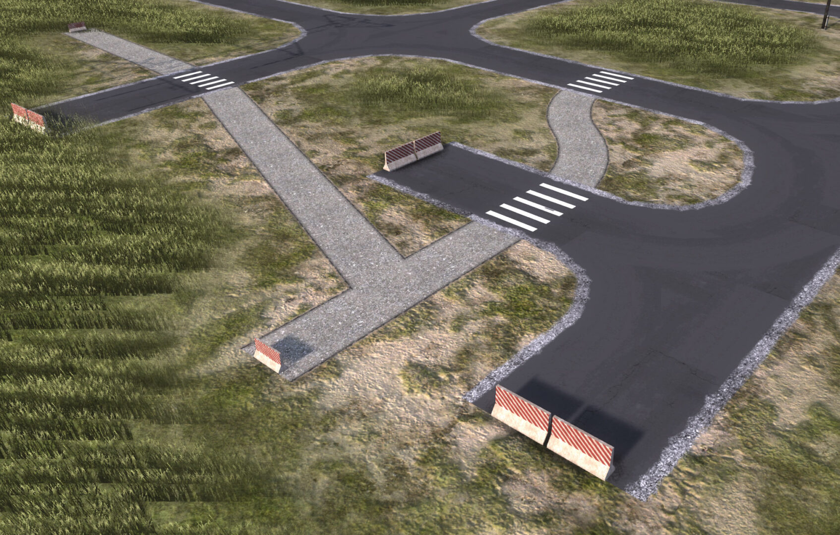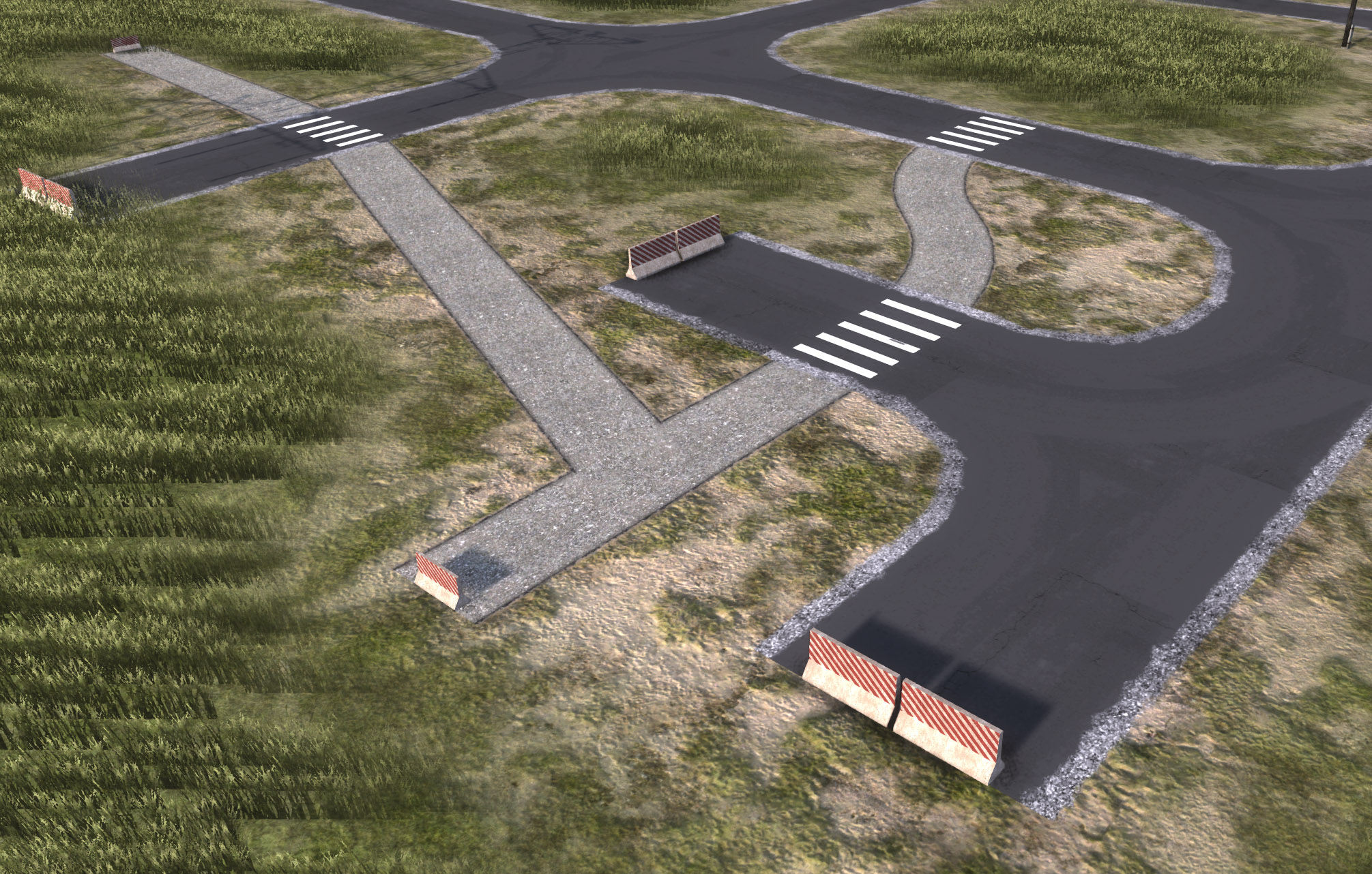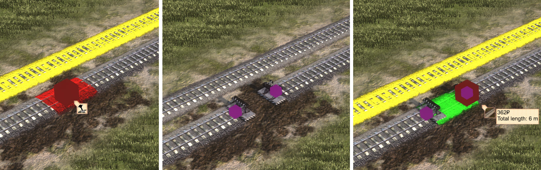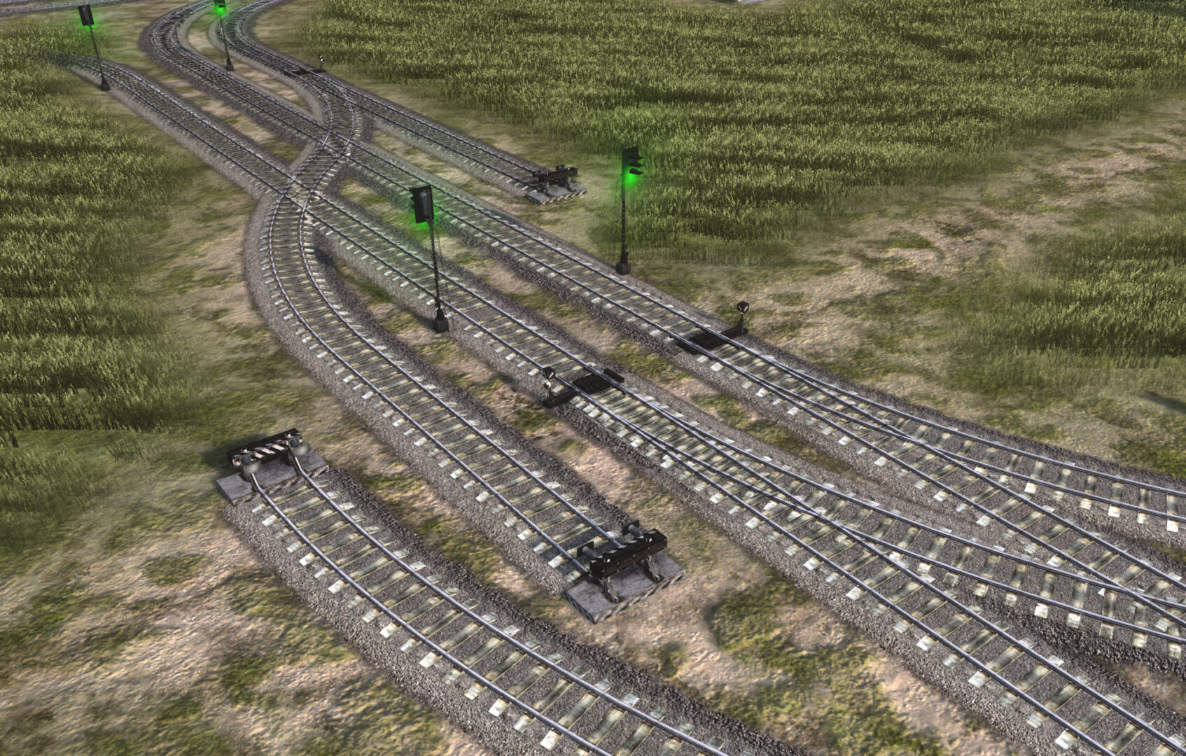 Позвольте начать с кое-чего нового. Мы добавили переключатели на железнодорожные пути и модели барьеров в местах окончания дорог, тропинок и железных дорог. Вы можете увидеть их на этих изображениях в состоянии «работа в процессе», поскольку нам нужен ваш фидбек и в ближайшем будущем мы можем внести в них некоторые изменения. Это визуальное нововведение, которое не должно влиять на геймплей, но может выглядеть странным в некоторых ситуациях – даже если оно смотрится хорошо в простых комбинациях, в сложных соединениях это может оказаться не так. Поэтому данное нововведение требует некоторой настройки на основе вашего фидбека, как и любые другие новые вещи, добавляемые в игру.