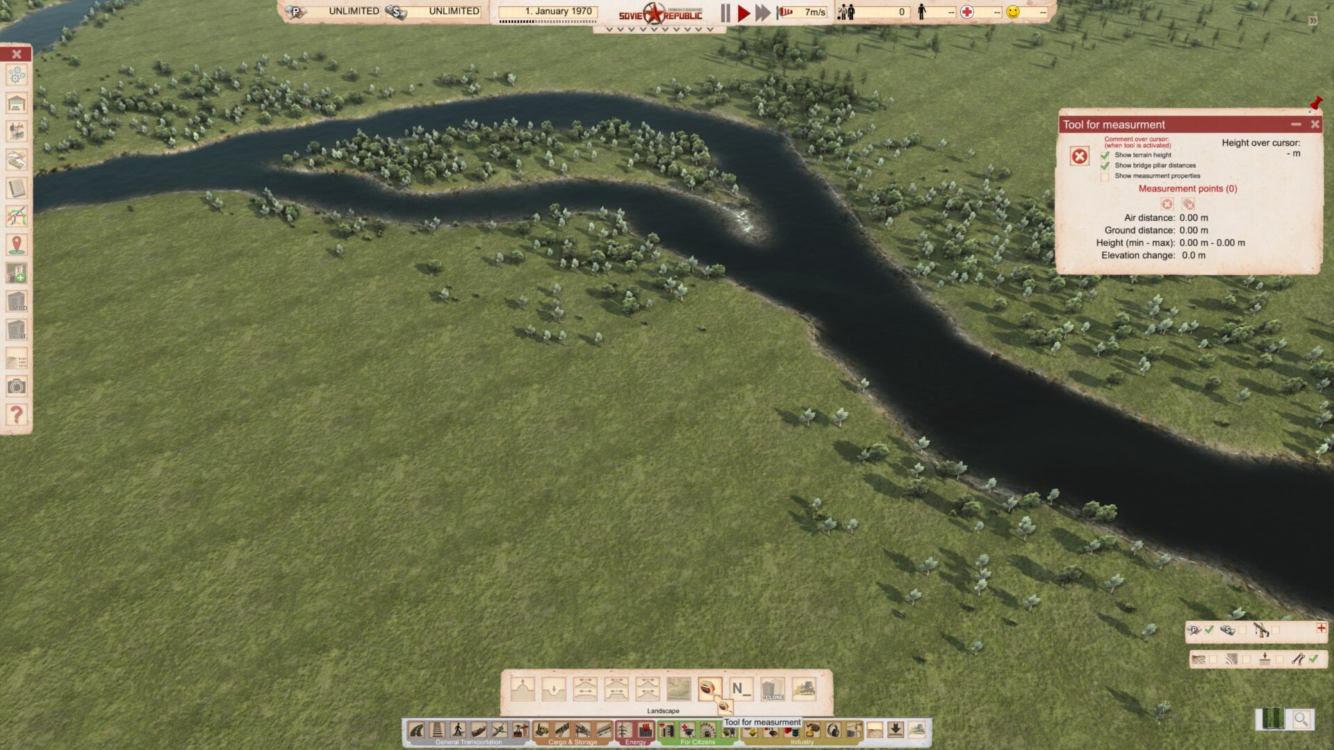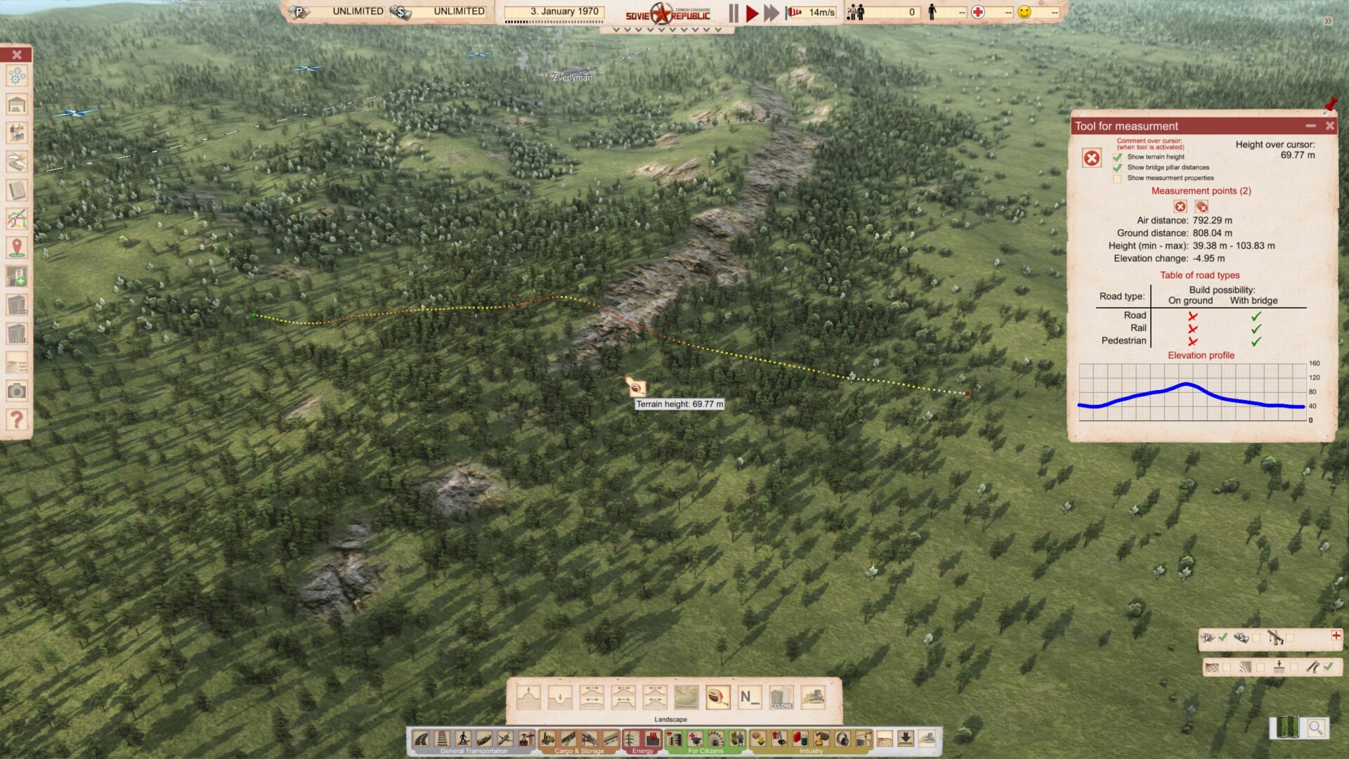 Мы также имеем кое-что, о чём не упоминалось в чейндждогах и что уже присутствует в игре. Мы добавили новый инструмент измерения, который вы можете найти в подменю терраформинга. С помощью него можно измерять расстояние и высоту. Это может помочь вам лучше планировать, избавит от необходимости использовать обходные пути и дополнительные возможности графического интерфейса с целью измерения объектов и зон на карте. Инструмент довольно прост в использовании и показывает большую часть информации, которая может вам потребоваться.