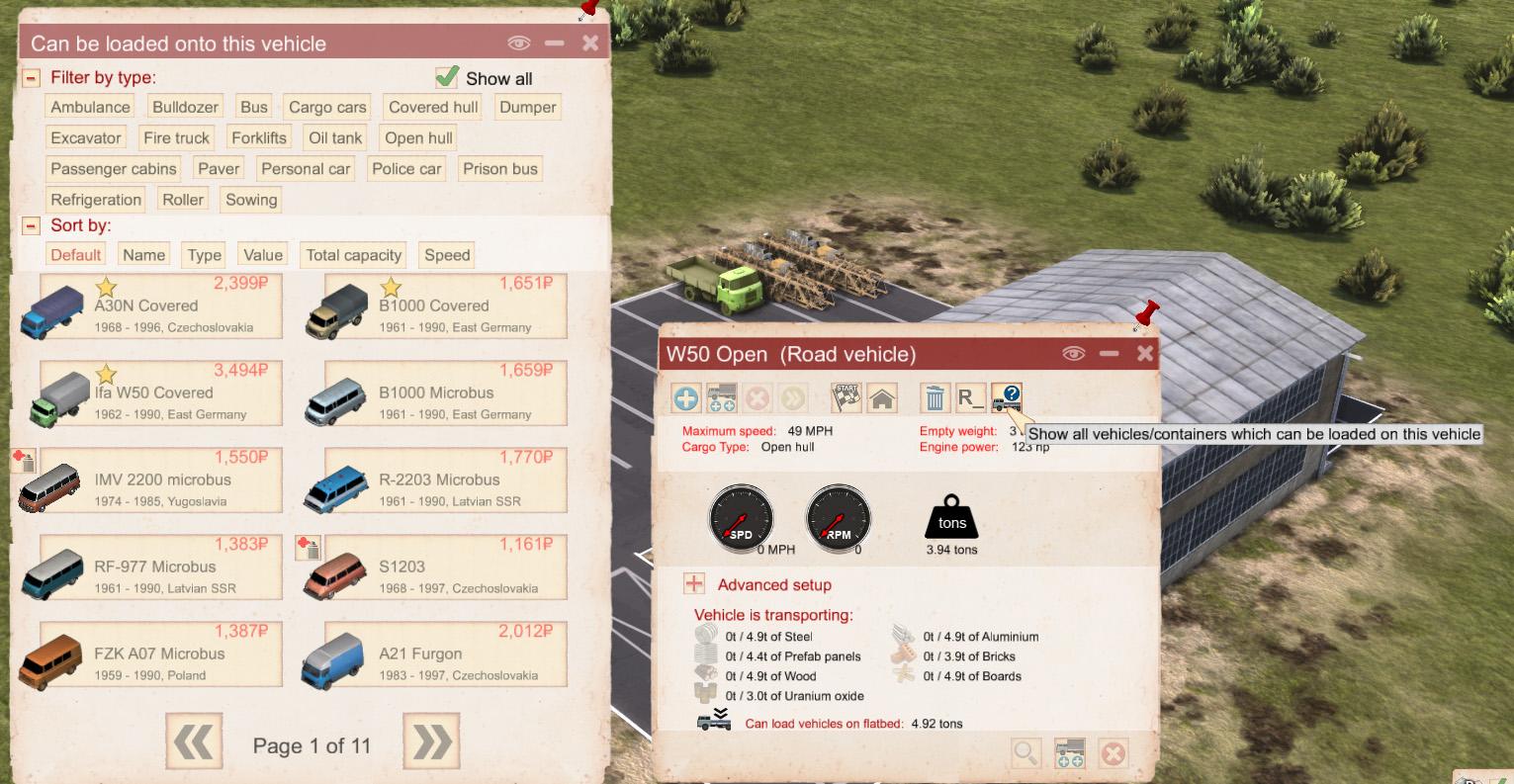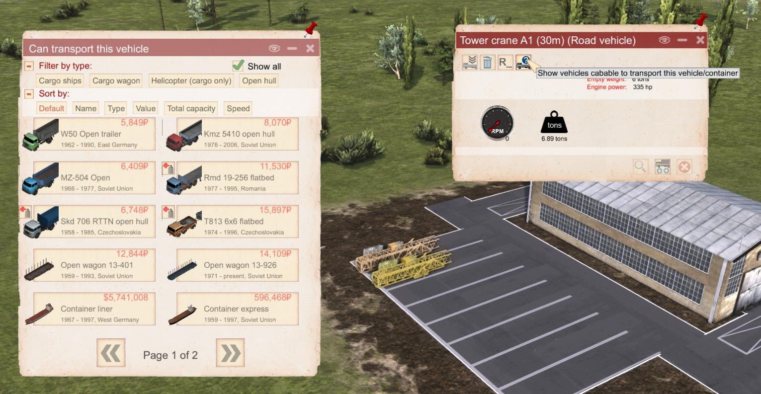 Ещё одно небольшое изменение – новая кнопка, которая показывает, какое транспортное средство может быть загружено в выбранное транспортное средство и какое может перевозить его как груз.